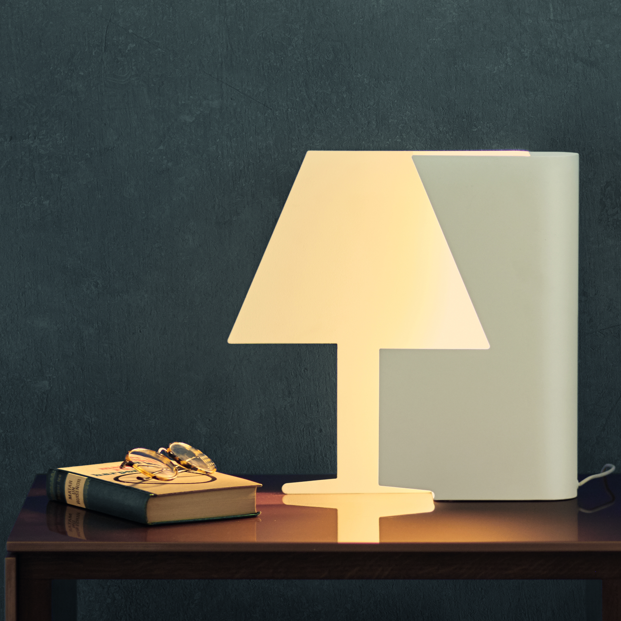 Коллекция BOOK является остроумной рефлексией на традиционную форму настольных ламп. Внутри тонкого корпуса светильника, дизайнер Лилия Дзис рисует силуэт лампы с абажуром. Когда лампа включена, свет заполняет форму абажура и создает ощущение двоичности формы. Форма светильника также перекликается с ее прямым назначением - освещение для чтения, так как по толщине светильник напоминает настольную книгу. Таким образом, дизайнер наполняет свой предмет множеством образных смыслов. Коллекция BOOK предназначена для использования на рабочем столе или прикроватном столике. Простота и лаконичность формы создает ощущение спокойствия, а мощность освещения идеально подходит для чтения. Лампа выполнена из тонкого металла в универсальной белой отделке.