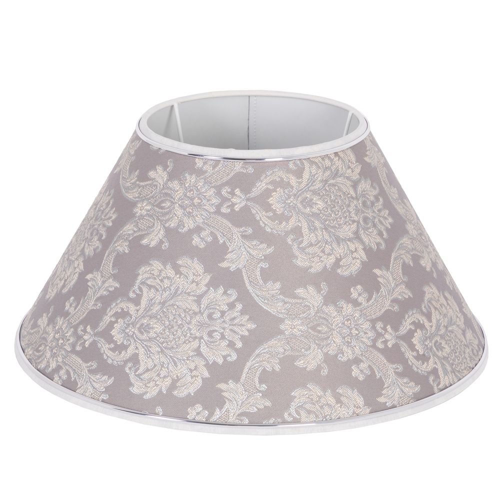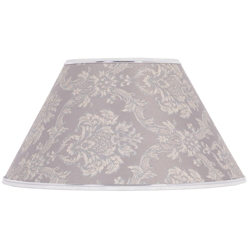 Абажур с нижним способом крепления, имеет конструкцию, основой которой служит металлический каркас и креплением под цоколь E27(стандартный – Ø 4 см). В отделке используется Голландский пластик с золотым молдингом. Мощность ламп: 60W