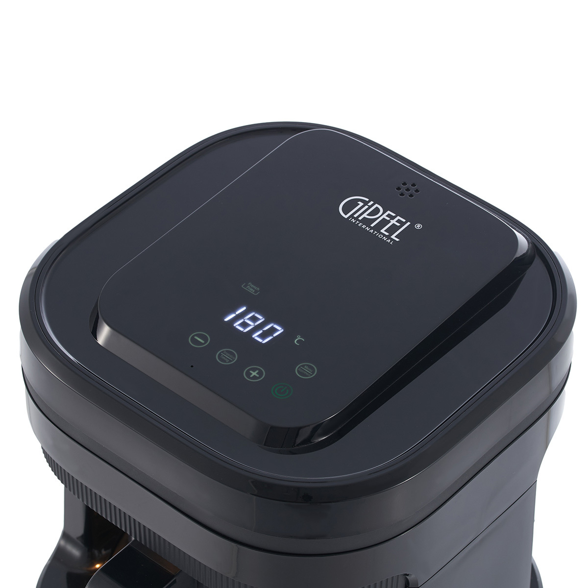 Аэрогриль Gipfel Chef 52677 со стеклянной чашей 3 л, LED дисплей, 6 программ приготовления, контроль времени и температуры, мощность 1350 Вт. Цвет корпуса: черный.