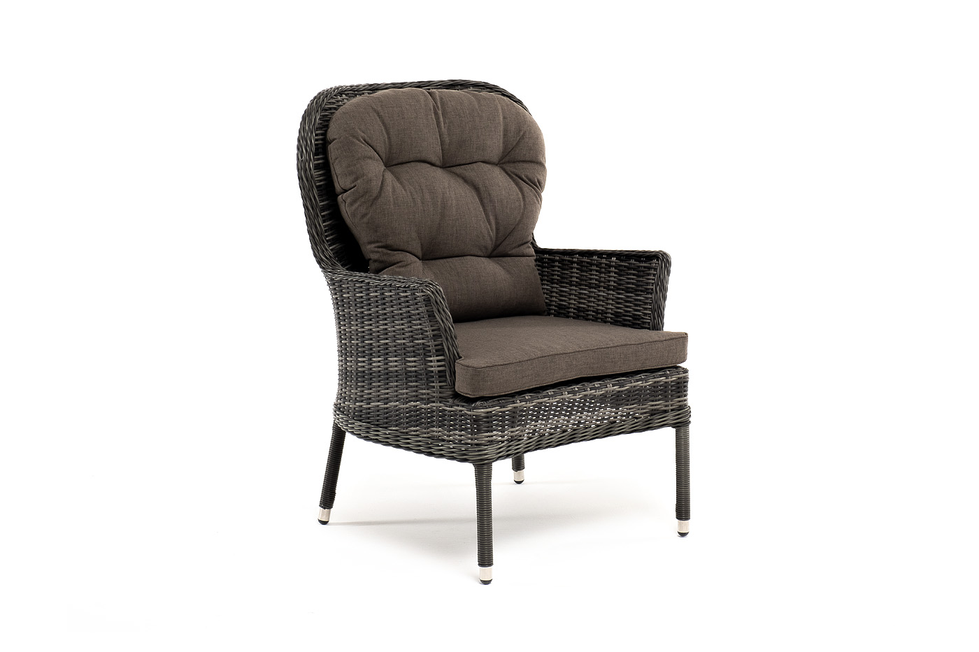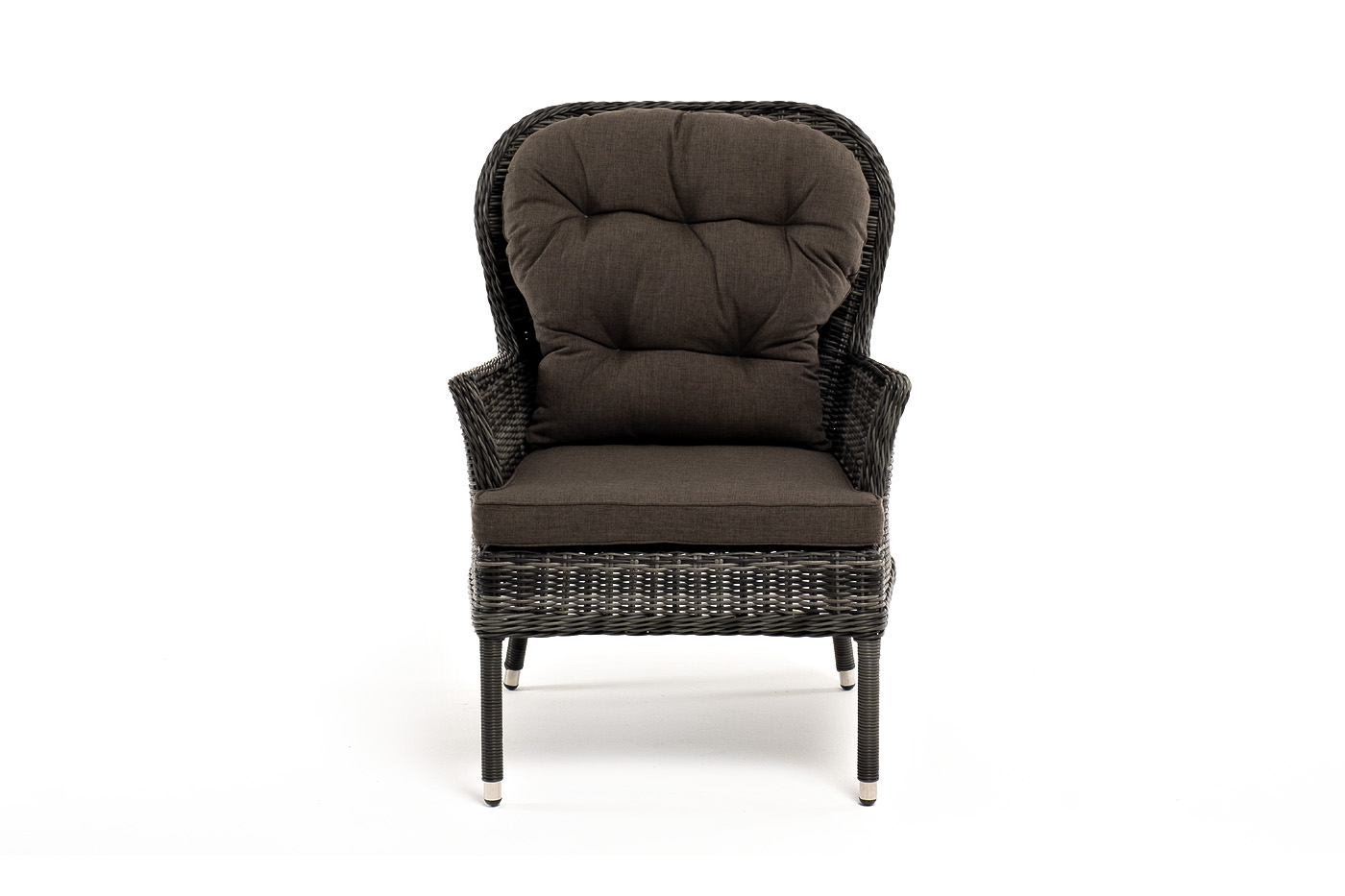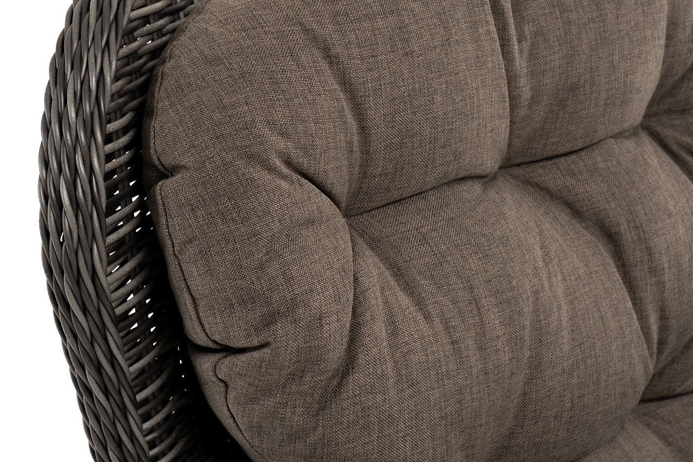 Каркас выполнен из высококачественного алюминия, который оплетен круглым искусственным ротангом графитового цвета.