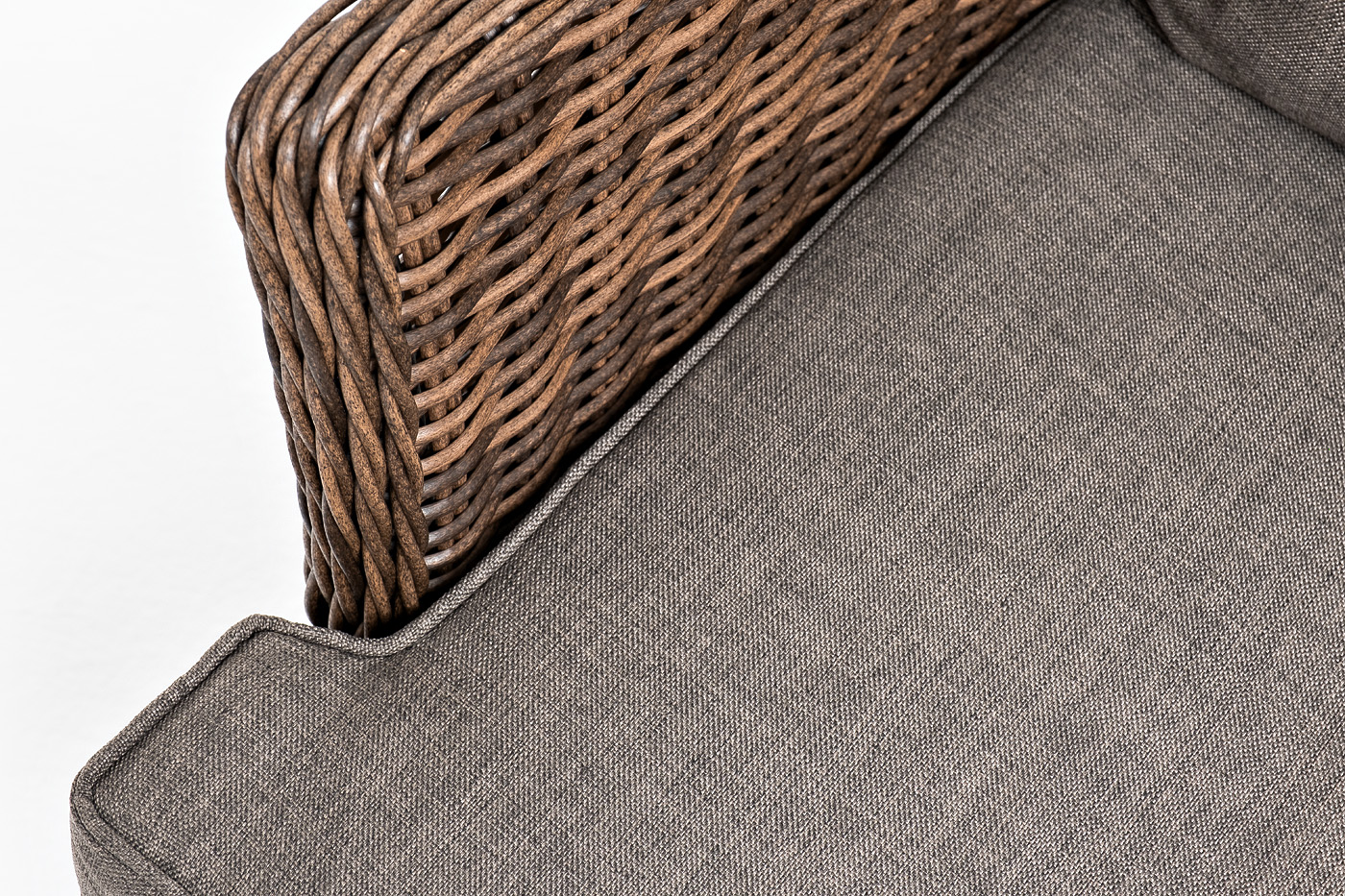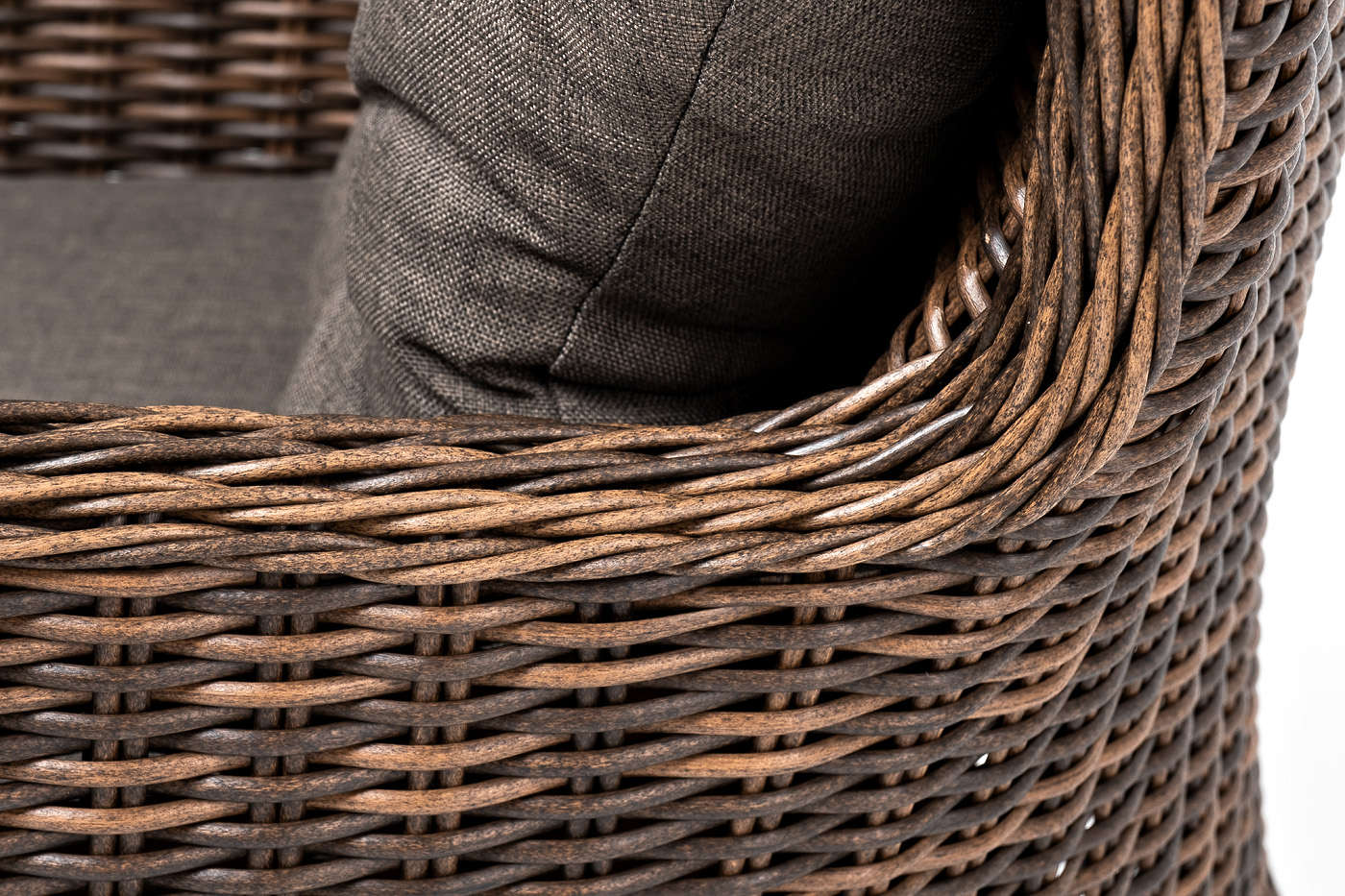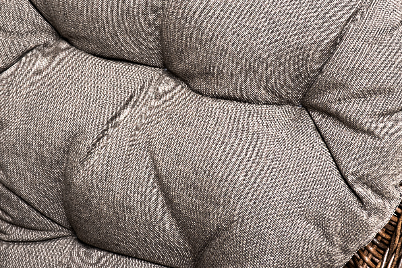В садовое кресло укомплектовывается мягкими подушками. Они пошиты из износостойкого полиэстера серого оттенка с плотностью 300гр/м2. Защитные свойства синтетического материала усиливаются благодаря влагоотталкивающей пропитке.