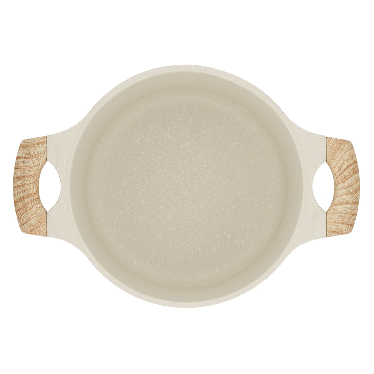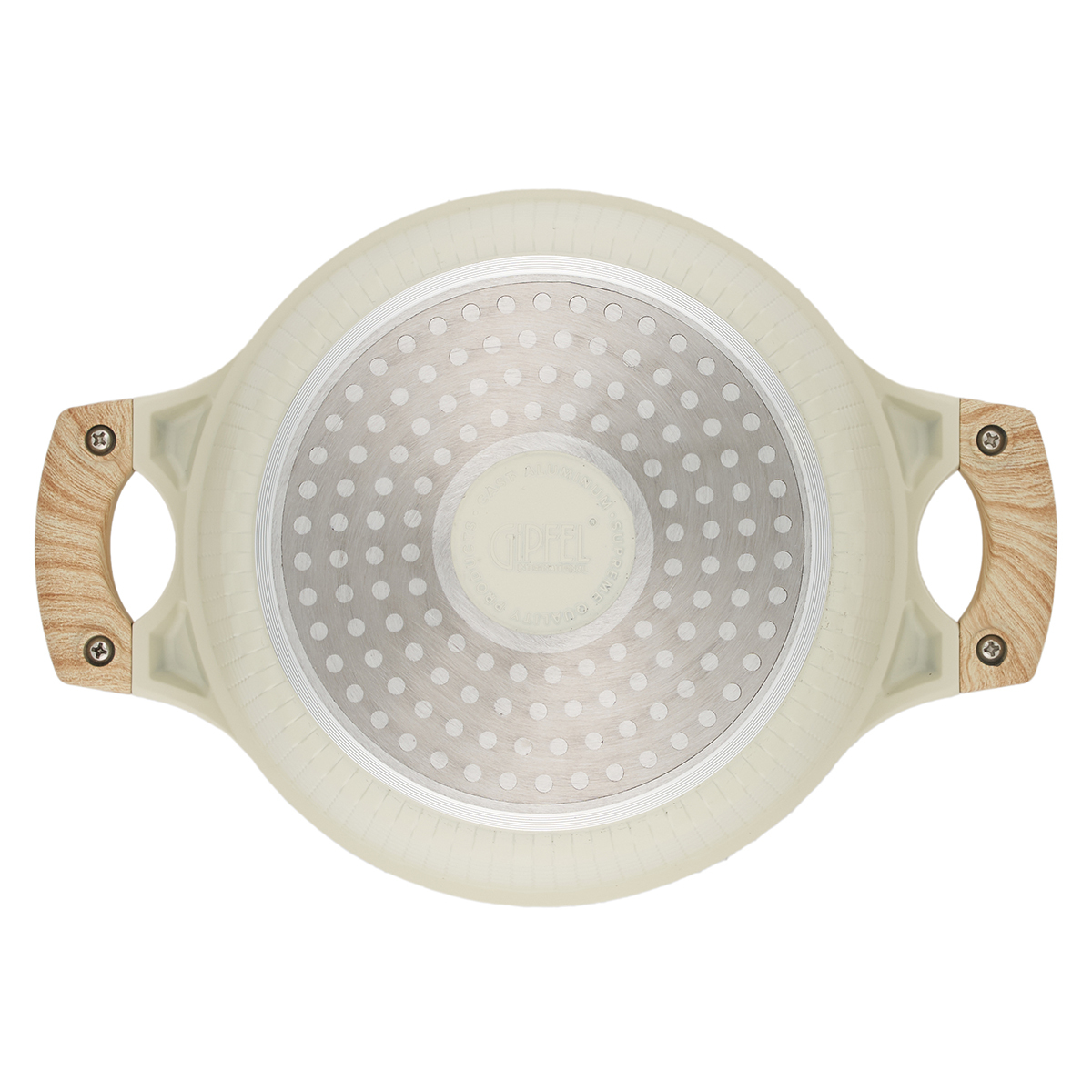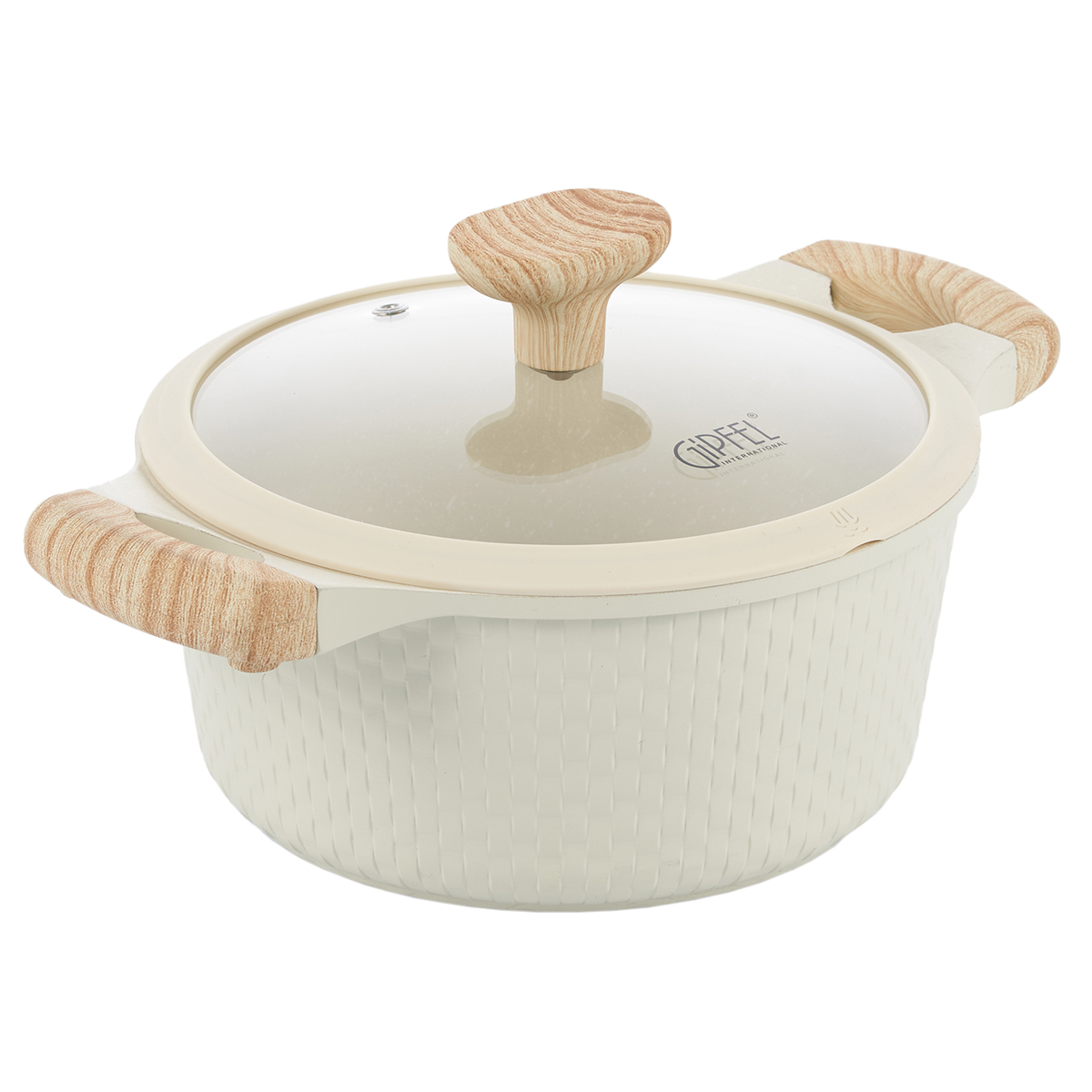 Алюминиевая кастрюля Gipfel Lattice 52650. Размер 20х9,5 см, объем 2,4 л. Изготовлена из литого алюминия с 3-слойным антипригарным мраморным покрытием Whitford QuanTanium, c бакелитовой ручкой с покрытием Soft-touch и стеклянной крышкой. Цвет: светло-бежевый.