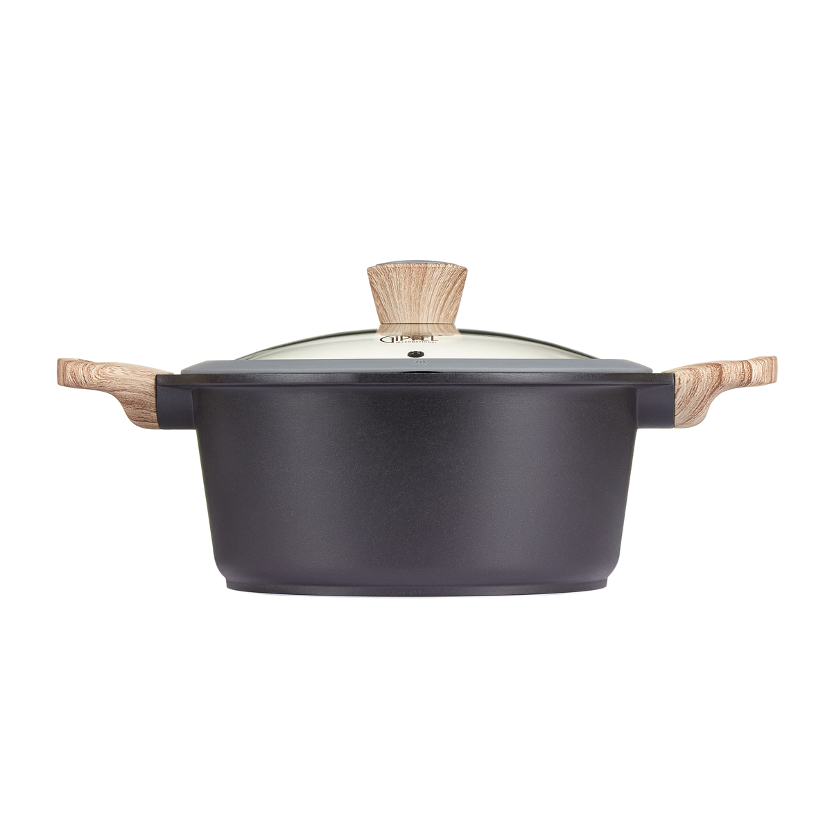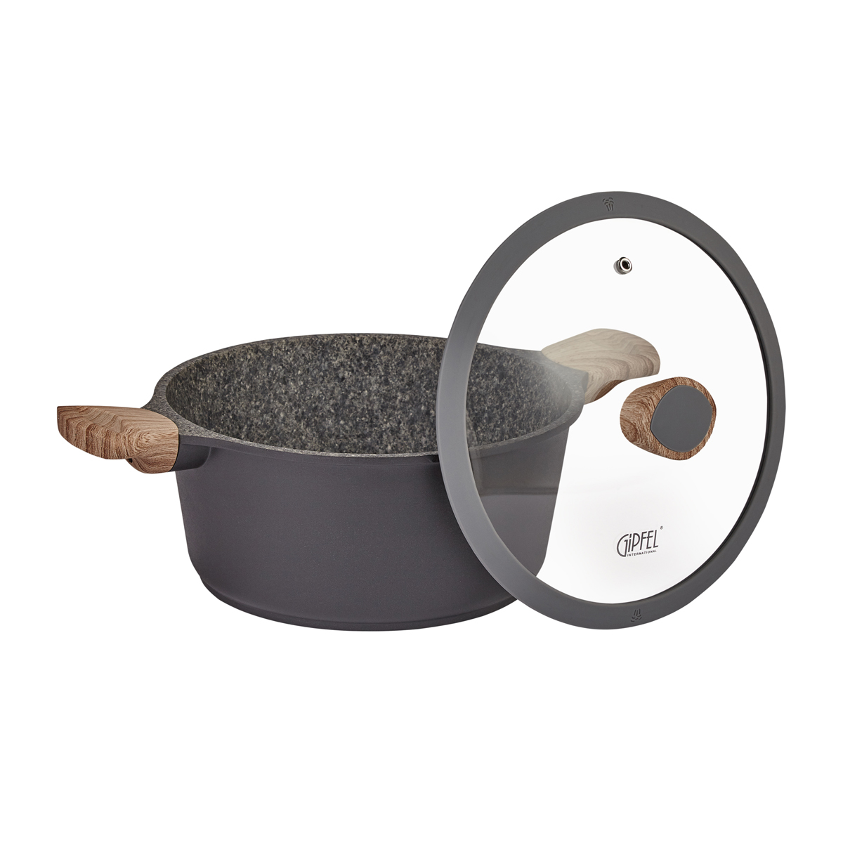 Кастрюля Gipfel OLIVER 0572. Диаметр 24 см , высота 11,5 см, объем 4,3 л. Кастрюля сделана из литого алюминия с антипригарным покрытием Pfluon Granite. Ручки бакелитовые с приятным на ощупь покрытием, не нагреваются при готовке.