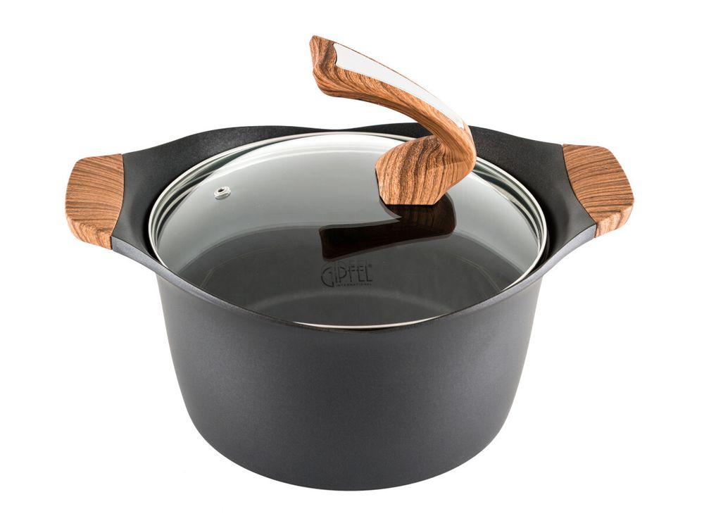 Кастрюля Gipfel PASAT 0543. Объем 6 л. Размер кастрюли 28х13,5 см. Кастрюля сделана из литого алюминия и имеет индукционное дно. Внутри нанесено 2-слойное антипригарное покрытие. Бакелитовые ручки с силиконовым покрытием. Безопасность и комфорт использования обеспечиваются за счет жаропрочной прозрачной крышки, эргономичных бакелитовых ручек с силиконовым покрытием. Подходит для индукционных плит. Изделие упаковано в фирменную коробку.