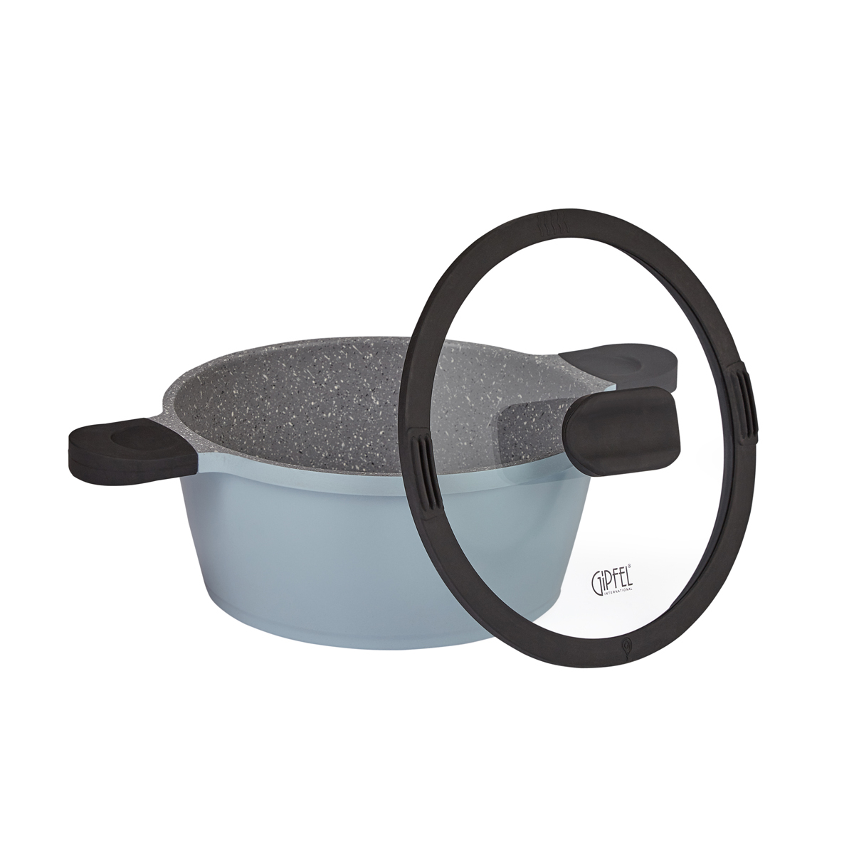 Кастрюля Gipfel PASTEL 0776 2,5л с антипригарным покрытием со стеклянной крышкой и силиконовыми ручками. Размер кастрюли 20х9,4 см. Диаметр дна 17 см. Толщина стенок 2 мм, толщина дна 4 мм. Сделана из литого алюминия. Ручки силиконовые. Цвет голубой.