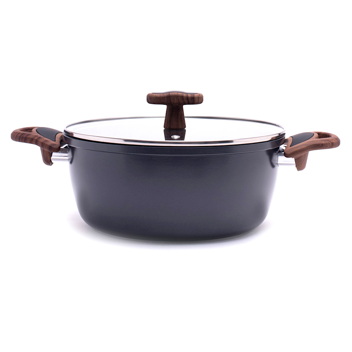 Кастрюля изготовлена из литого алюминия, имеет толстые стенки 2,3 мм, идеально подойдет не только для супов, но и для вторых блюд, требующих продолжительного тушения. Двуслойное мраморное покрытие исключит пригорание пищи. Кастрюля подходит для всех видов плит, включая индукционные. Диаметр индукционного дна 19 см. У кастрюли удобные широко расставленные бакелитовые ручки с покрытием Soft touch. Они не скользят в руках и не нагреваются в процессе готовки.
