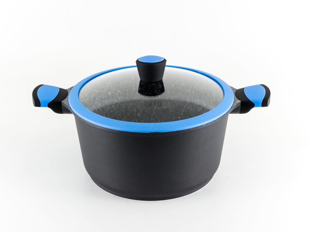 Кастрюля Gipfel SANDRA 0581. Размер 24х12,5 см/6,5 л. В комплекте стеклянная крышка с силиконовым ободком. Сделана из литого алюминия. У кастрюли индукционное дно. Внутри гранитное антипригарное покрытие PFLUON.