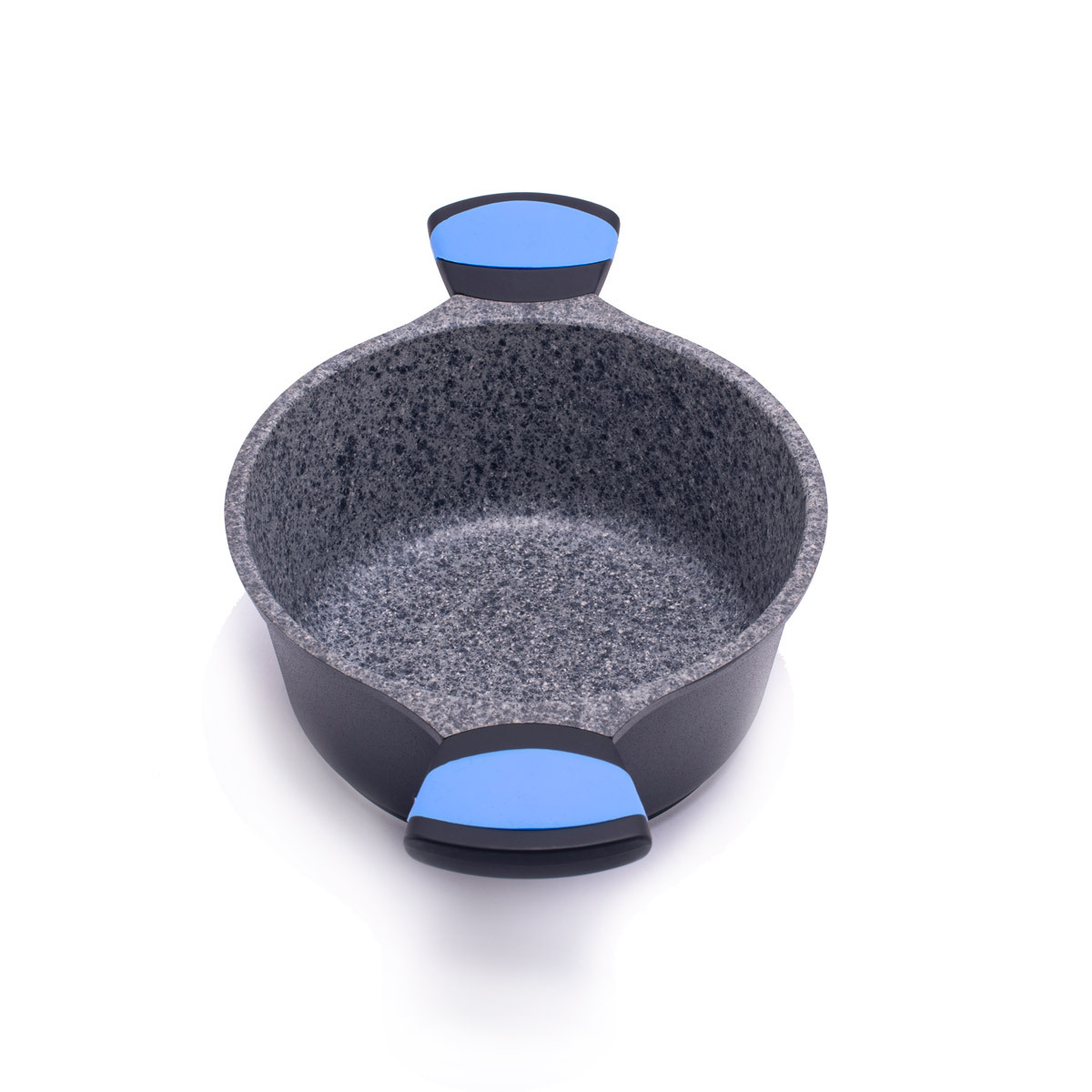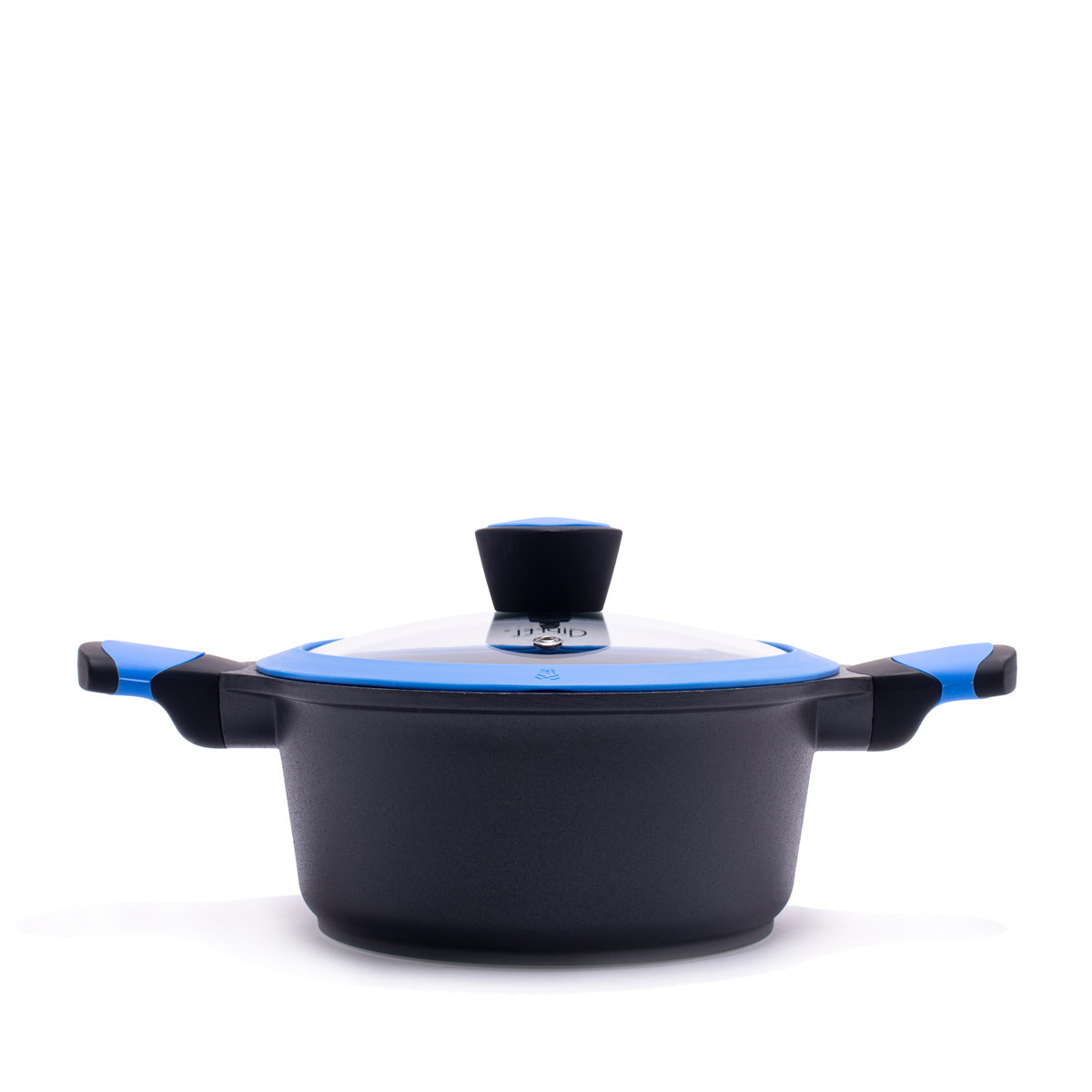 Алюминиевая кастрюля Gipfel SANDRA 0583. Размером 20х9,5 см, объемом 2,5 л. У кастрюли стеклянная крышка с силиконовым ободком. Синие бакелитовые ручки с покрытием SOFT TOUCH приятны на ощупь и позволяют плотно держать кастрюлю. Кастрюля сделана из литого алюминия с антипригарным гранитным покрытием PFLUON.