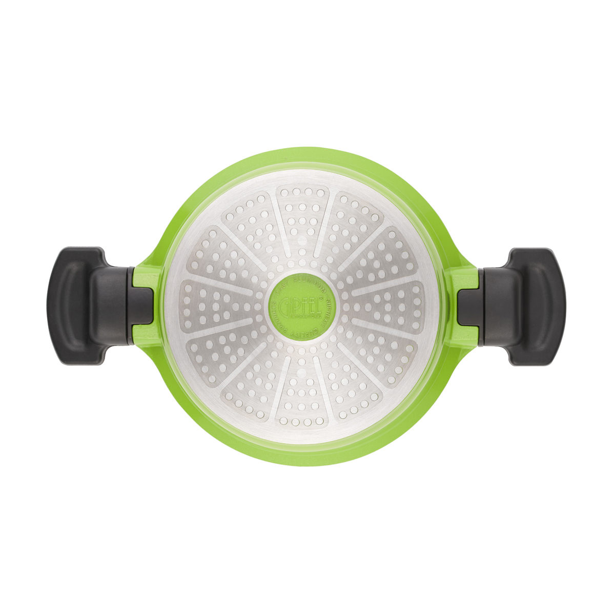 Посуда серии SHAFRAN – прекрасный пример сочетания посуды отличного качества и оригинального дизайна. Яркая зеленая расцветка корпуса разнообразит любой кухонный интерьер, а трехслойное антипригарное покрытие non-stick исключит пригорание пищи при готовке. Все модели серии SHAFRAN подходят для использования на индукционных плитах, объем данной кастрюли составляет 2,4 литра.
