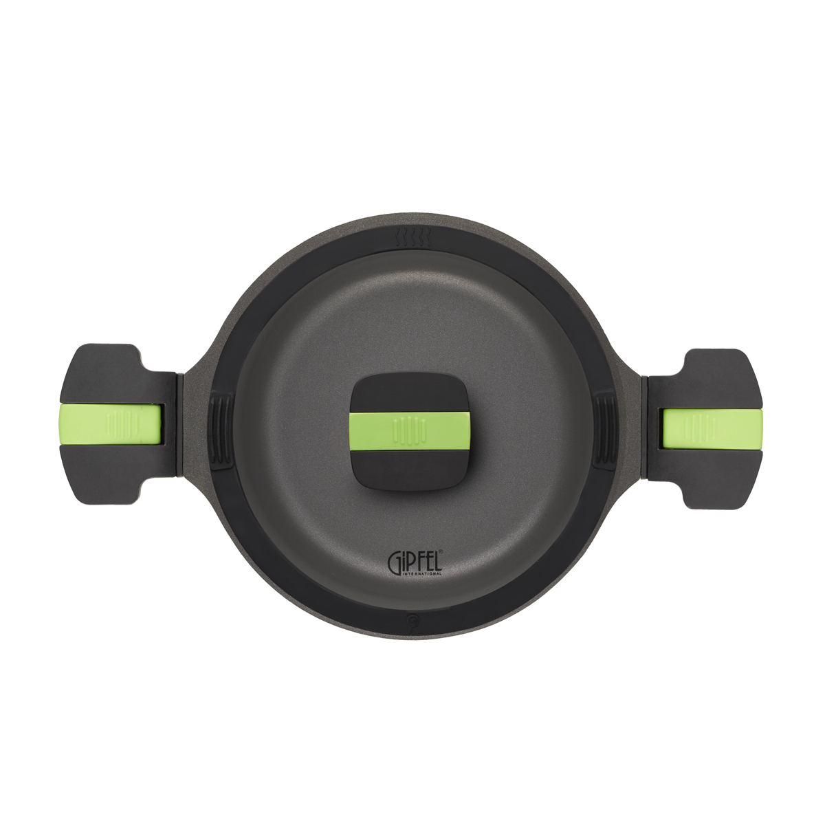 Алюминиевая кастрюля Gipfel Shafran 0673. Размер 20х10,5 см, объем 2,4 л. В комплекте стеклянная крышка. У кастрюли индукционное дно. Сделана из литого алюминия. Имеет съемные ручки с силиконовым покрытием. Внутри 3-слойное антипригарное покрытие.