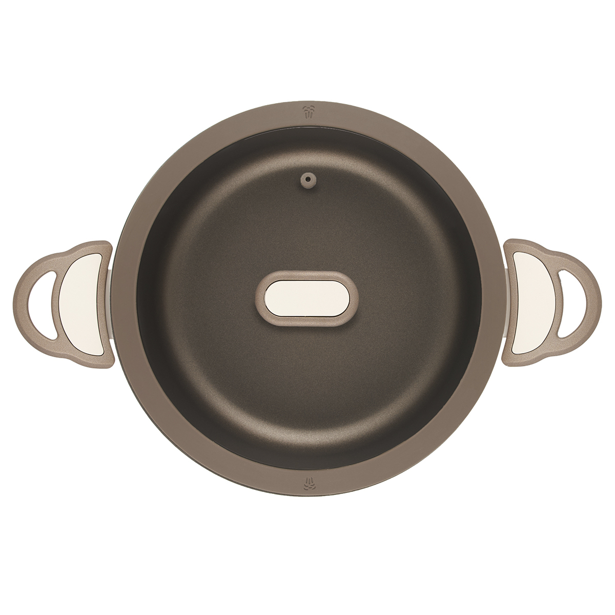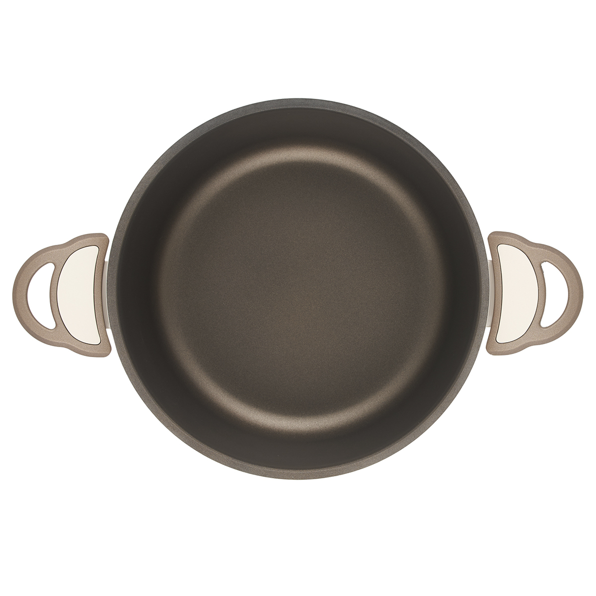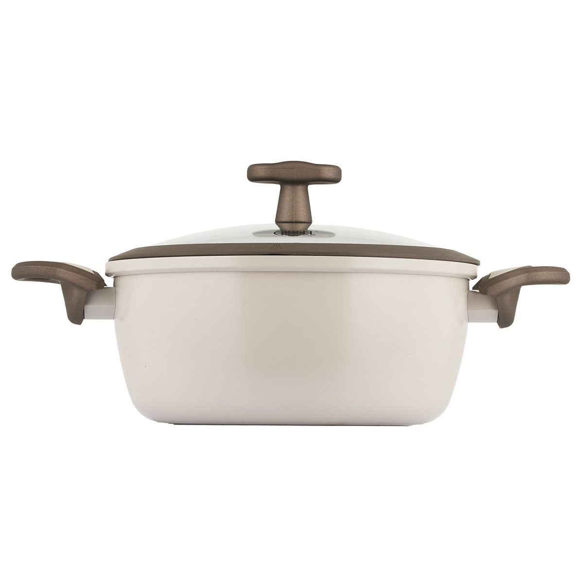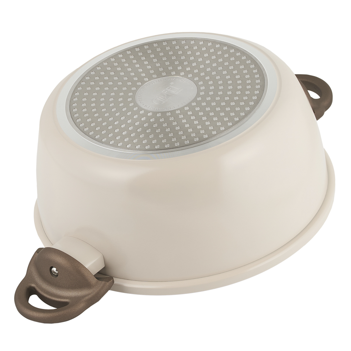 Кастрюля Gipfel STADELLA BEIGE 51108. Размер 24х11 см, объем 5 л. В комплекте стеклянная крышка. Кастрюля сделана из прессованного алюминия. У кастрюли бакелитовая ручка с покрытием Soft-touch. Оснащена двуслойным антипригарным покрытием Pfluon COOKMARK. Подходит для любых видов плит, включая индукционные. Толщина стенок 2,5 мм, толщина дна 3,5 мм.