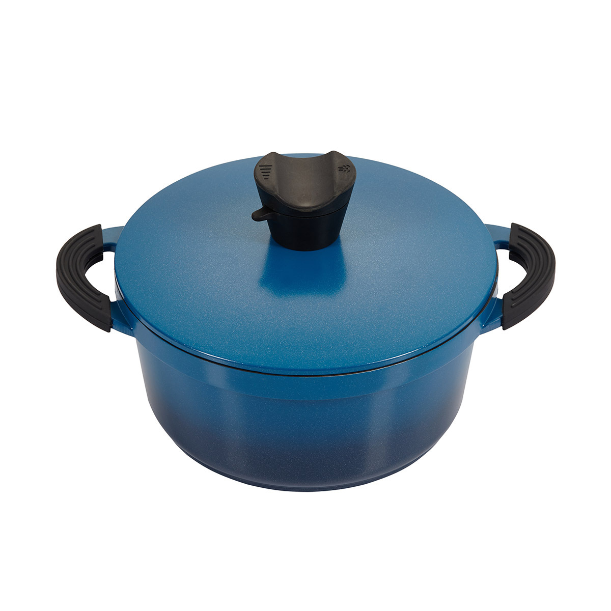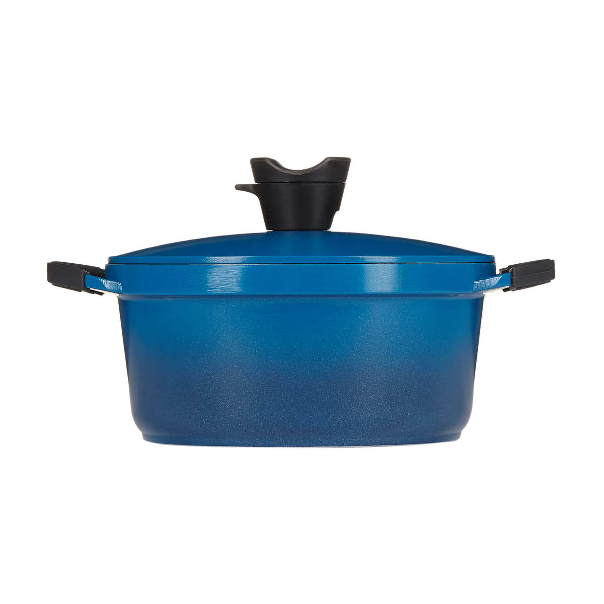 Кастрюля с крышкой Gipfel TERA 0720 из литого алюминия, съемными силиконовыми ручками с антипригарным покрытием класса премиум Ilag Ultimate, 20х9,5 см. Толщина: 2,0/4,5 мм. Материал: литой алюминий, силикон. Базовый цвет: синий.