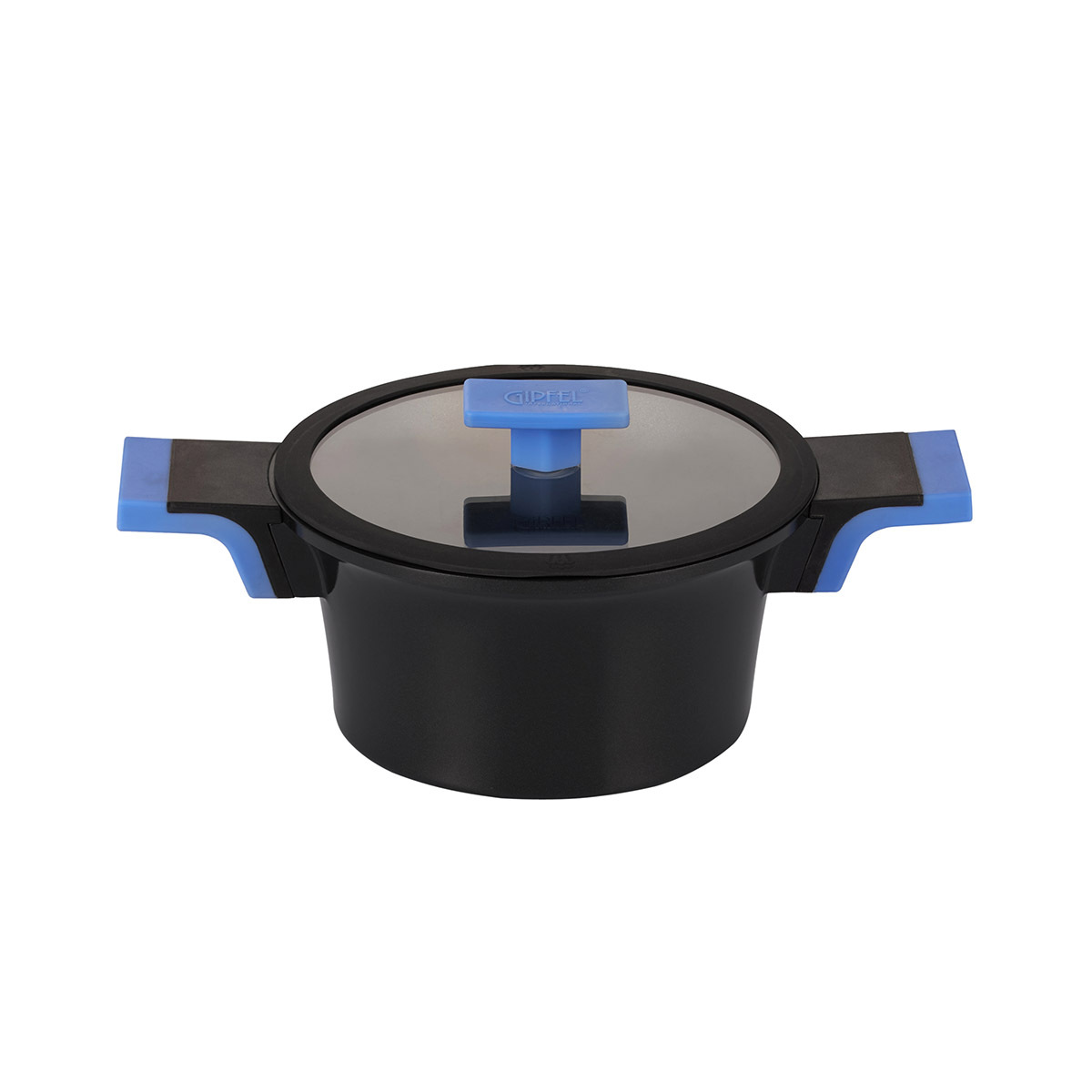 Алюминиевая кастрюля Gipfel Tiffi 0789 20х10 см из литого алюминия с 3-слойным антипригарным покрытием Teflon Select, индукционным дном, ручкой с покрытием Soft touch и стеклянной крышкой с силиконовым ободом. Толщина 2 мм / 5 мм.