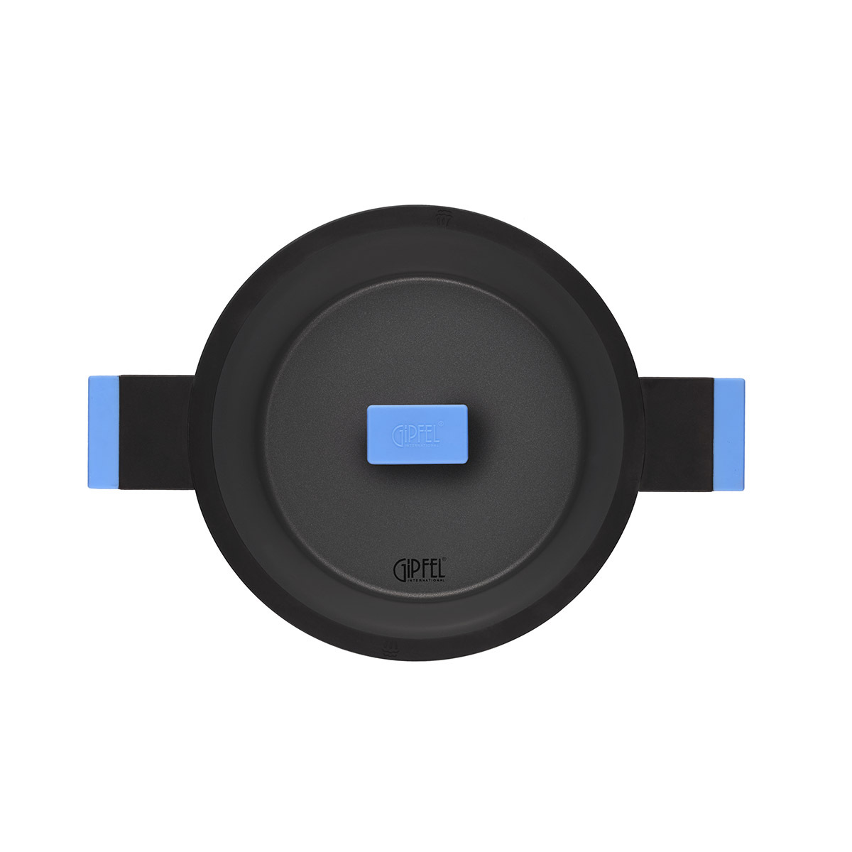 Кастрюля Gipfel TIFFI 0791 28х15 см из литого алюминия с 3-слойным антипригарным покрытием Teflon Select, индукционным дном, ручкой с покрытием Soft touch и стеклянной крышкой с silikonовым ободом. Толщина 2 мм / 5 мм.