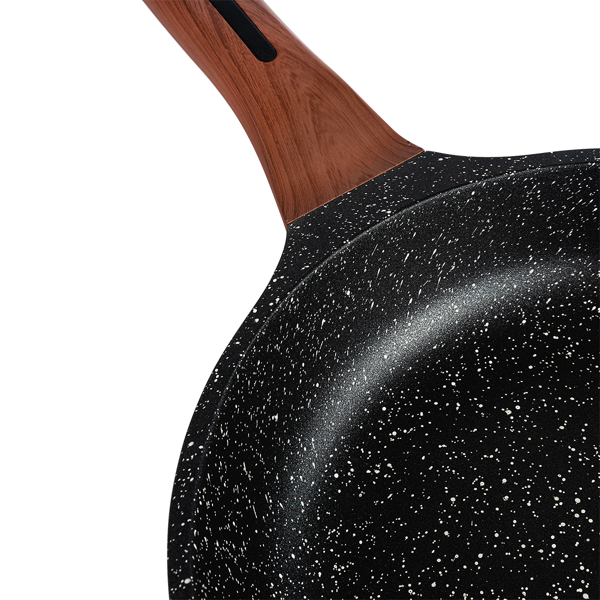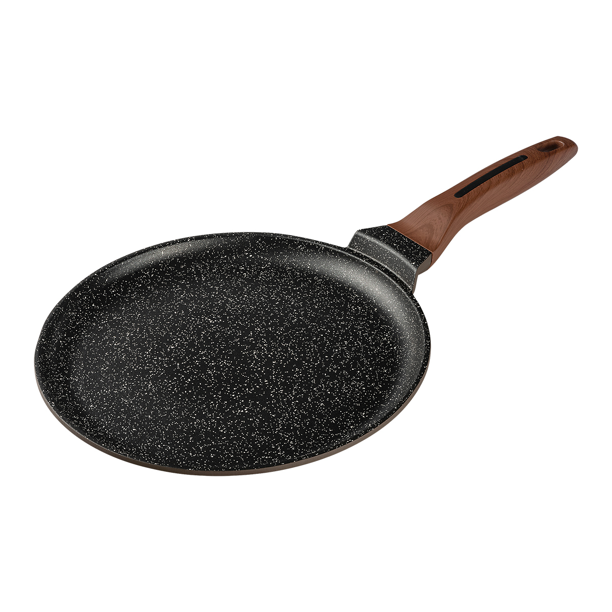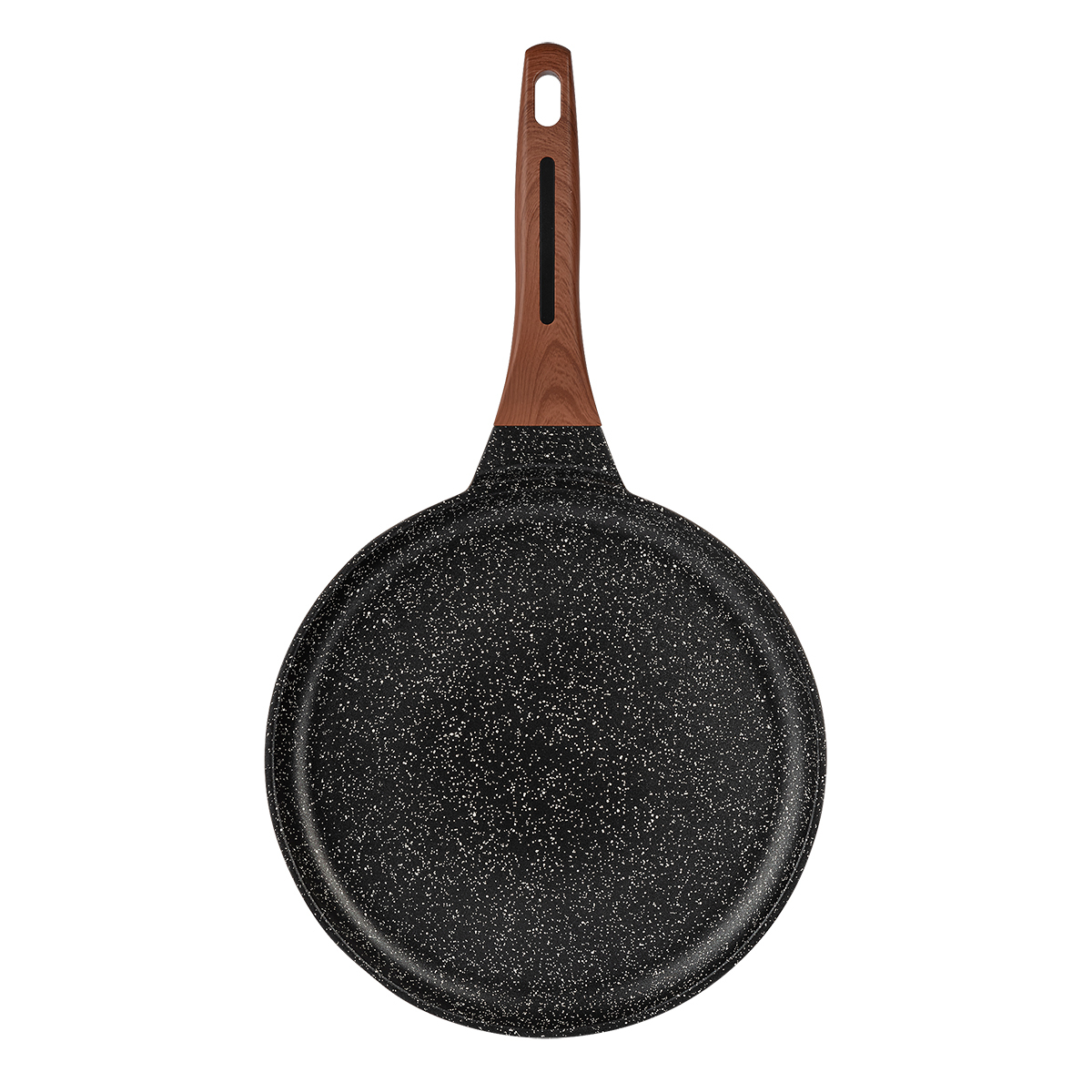 Алюминиевая сковорода блинная Werner Dono 51472 28 см. У сковороды двухслойное мраморное антипригарное покрытие Pfluon, что исключает пригорание. Ручка с покрытием Soft Touch, не скользит в руке и не нагревается.
