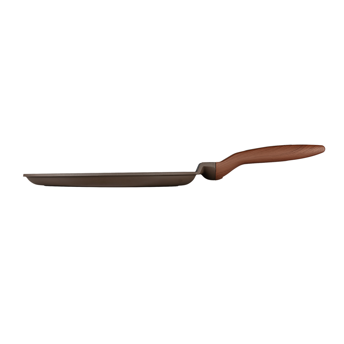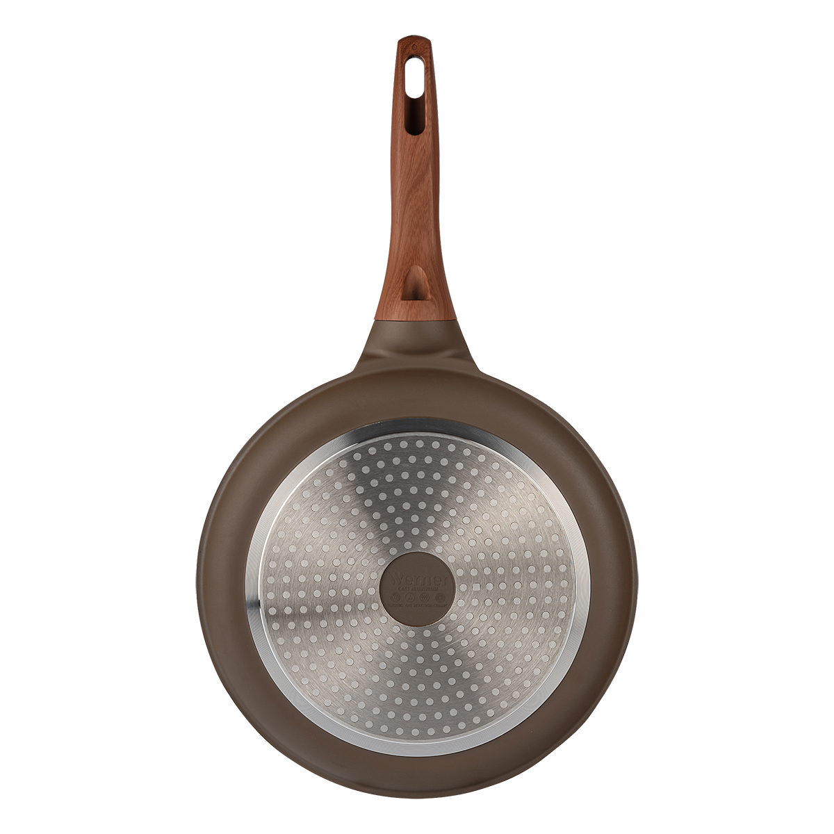 Как готовить с вдохновением? Всегда используйте свежие ингредиенты и правильную посуду. У вас в руках новая стильная сковорода Dono из литого алюминия с превосходным двухслойным антипригарным мраморным покрытием Pfluon, которое исключает пригорание при жарке блинов. Используйте силиконовые или деревянные лопатки, и покрытие надолго сохранит свои антипригарные свойства. Ручка с покрытием Soft Touch, не скользит в руке и не нагревается. Внешнее покрытие посуды деликатное матовое коричневое с оттенком хаки. Сковорода подходит для всех видов плит, включая индукционные. Толщина стенок: 1,8 мм, толщина дна: 4,5 мм.