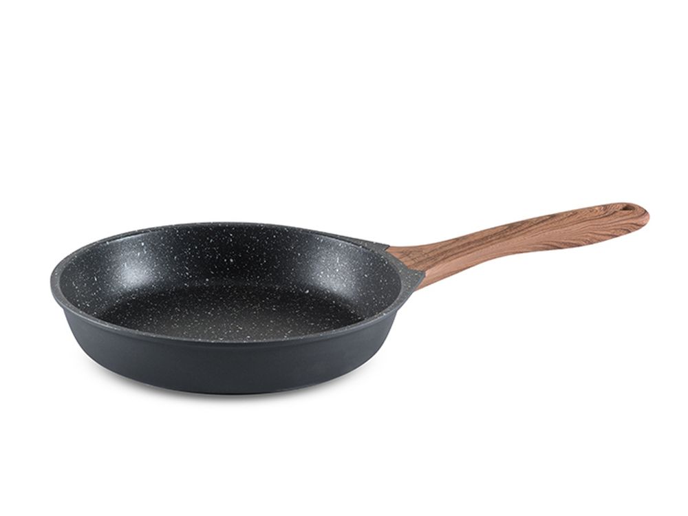 Серия сковород ADORA имеет массивный корпус (толщина стенок – 1,8 мм, толщина дна – 4,5 мм) изготовленный из литого алюминия. Этот материал и без того отличается повышенной прочностью и антидеформационными свойствами, а с такой толщиной посуда просто обречена прослужить вам долгие годы. Изнутри сковороды покрыты антипригарным покрытием Xylan Plus, а на бакелитовую ручку нанесено покрытие Soft-touch. Диаметр данной модели составляет 20 см.
