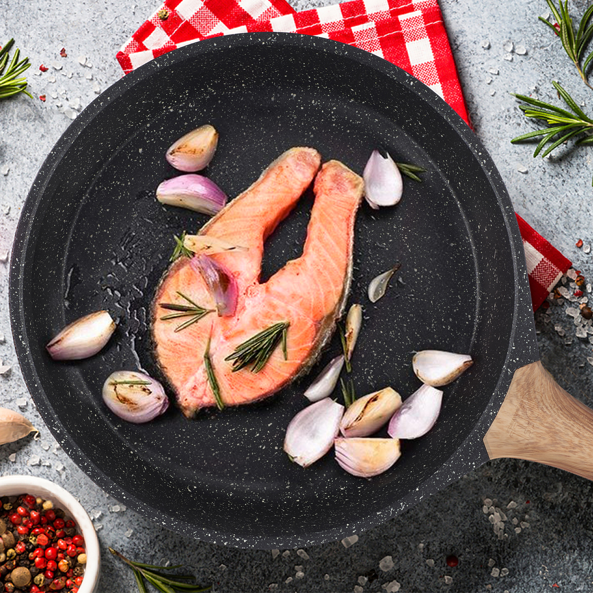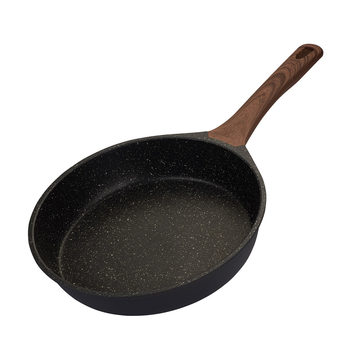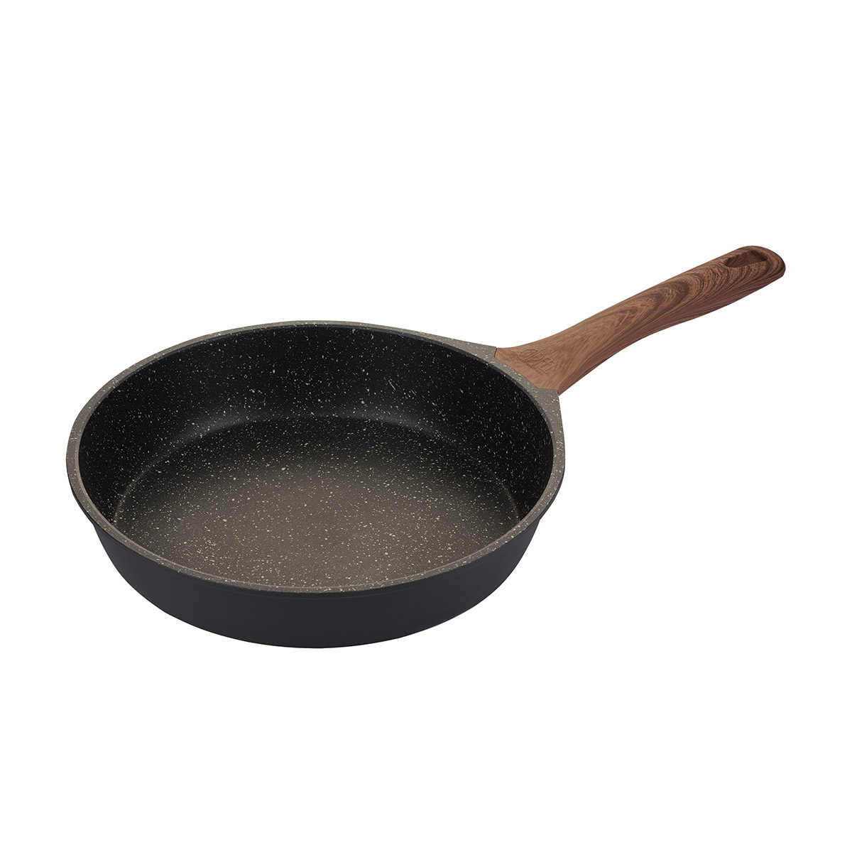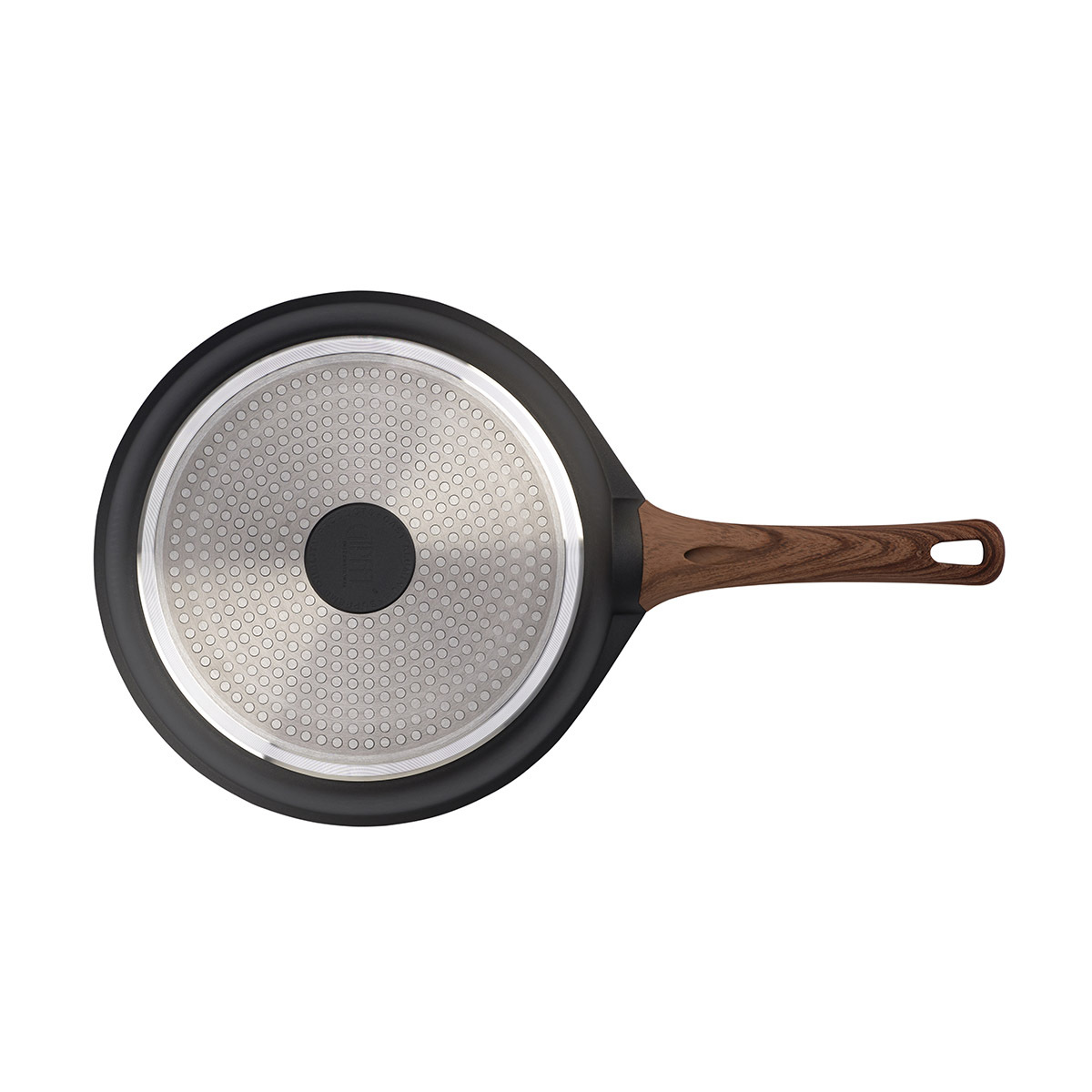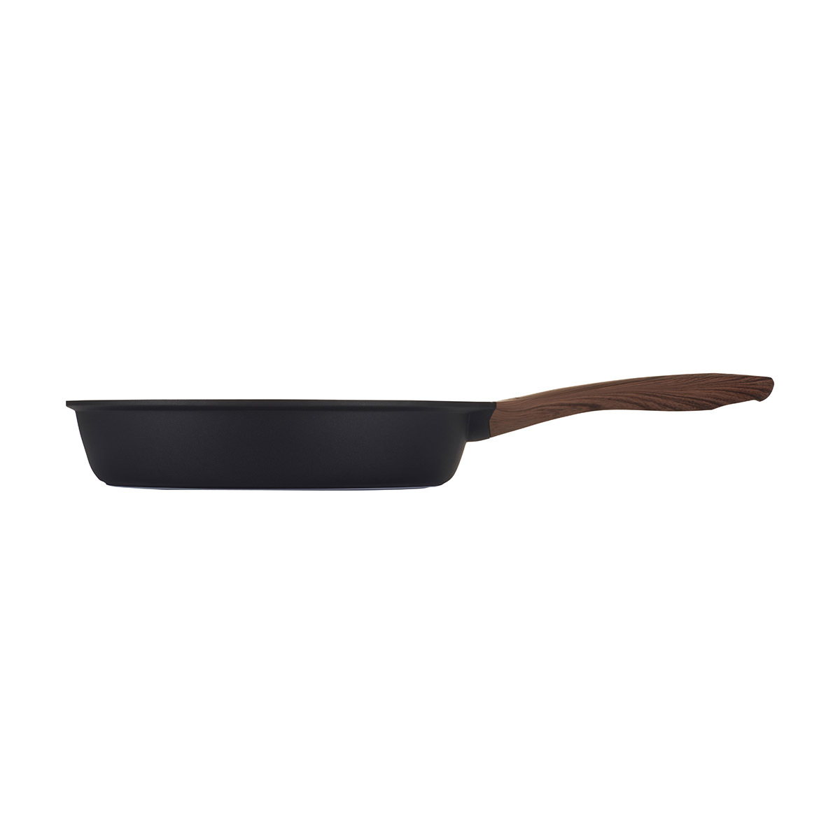 Серия сковород ADORA имеет массивный корпус (толщина стенок – 2 мм, толщина дна – 5 мм) изготовленный из литого алюминия. Этот материал и без того отличается повышенной прочностью и антидеформационными свойствами, а с такой толщиной посуда просто обречена прослужить вам долгие годы. Изнутри сковороды покрыты антипригарным покрытием Xylan Plus, а на бакелитовую ручку нанесено покрытие Soft-touch. Диаметр данной модели составляет 28 см.