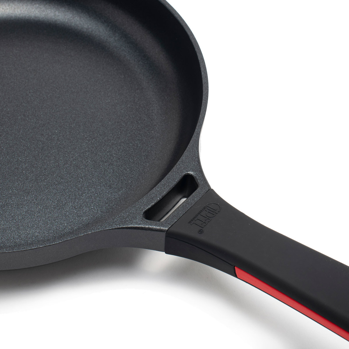 Серия классической посуды ANNELI изготовлена из качественного литого алюминия и оснащена антипригарным покрытием Xylan Plus. Посуда данной серии имеет довольно толстые стенки и дно (толщина составляет 1,8 мм и 4,5 мм соответственно). Серия ANNELI подходит для готовки на индукционных плитах. Диаметр данной сковороды составляет 24 см. Диаметр дна 20 см.