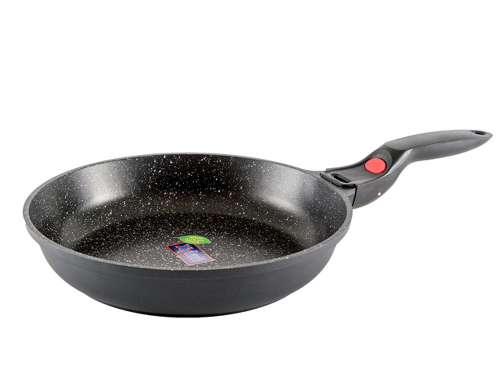0699 Gipfel Сковорода BERYL 28 см. Материал: литой алюминий. Толщина дна 4.5 мм, толщина стенок 1.8 мм. Антипригарное мраморное покрытие. Отсоединяющаяся бакелитовая ручка. Индукционное дно.
