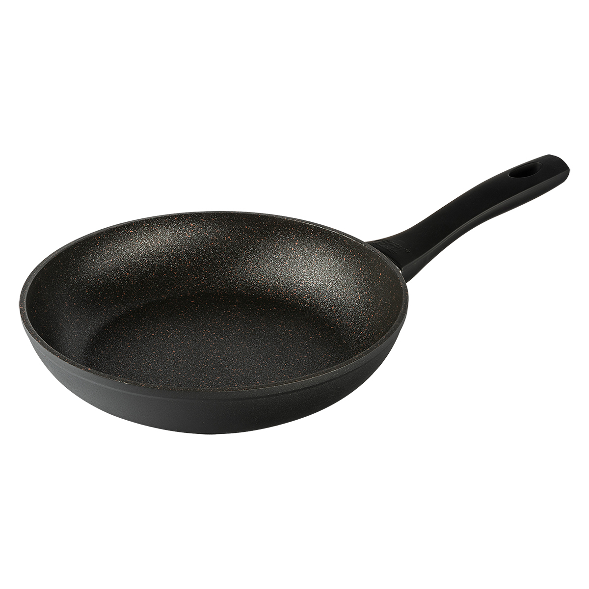 Данная сковорода изготовлена из кованного алюминия, что делает ее прочной, легкой, а также устойчивой к коррозии и деформации корпуса.