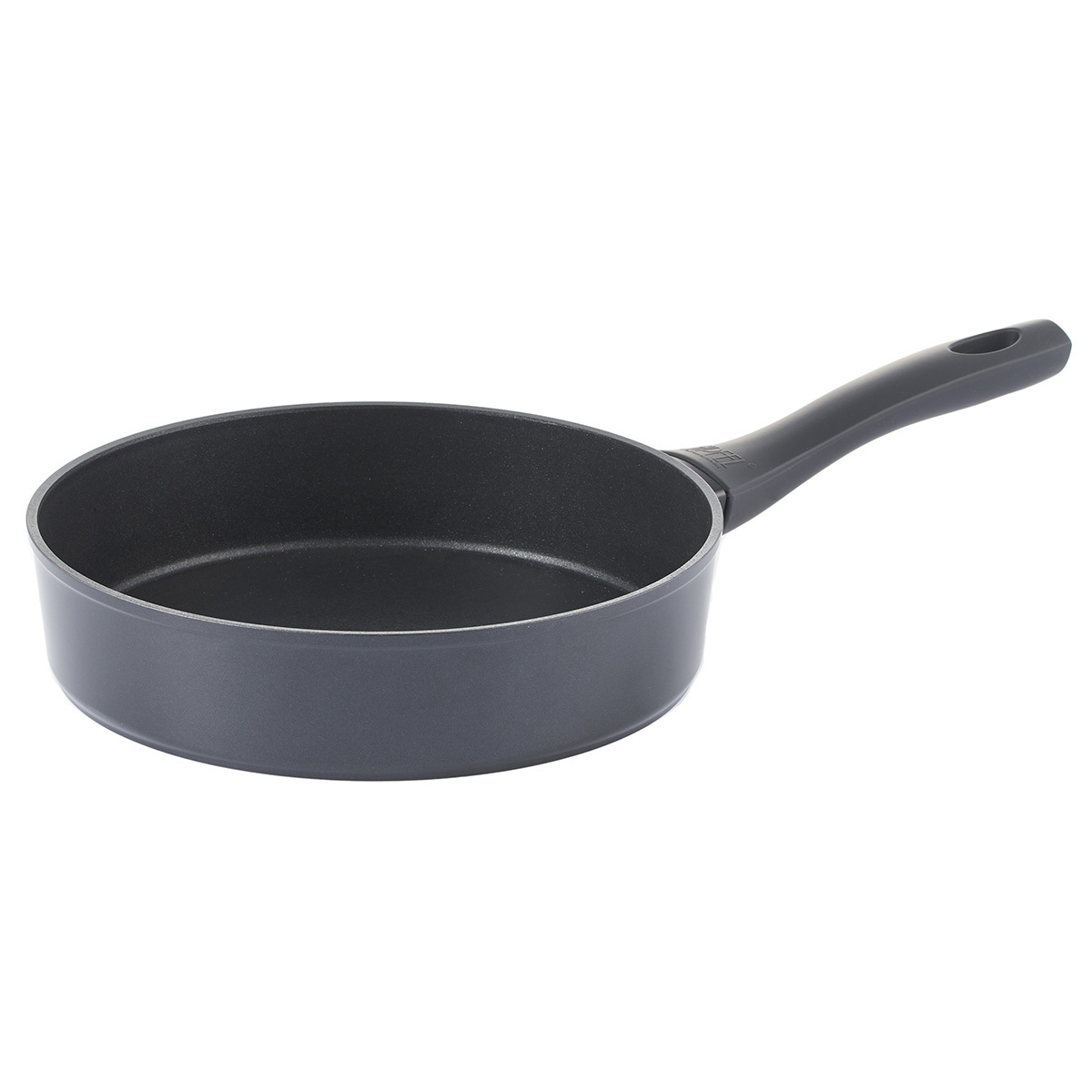 Сковорода диаметром 24 см и высотой стенок 5,5 см идеально подходит для приготовления гарниров и вторых блюд (мяса, рыбы, овощей), ее быстро и удобно мыть.