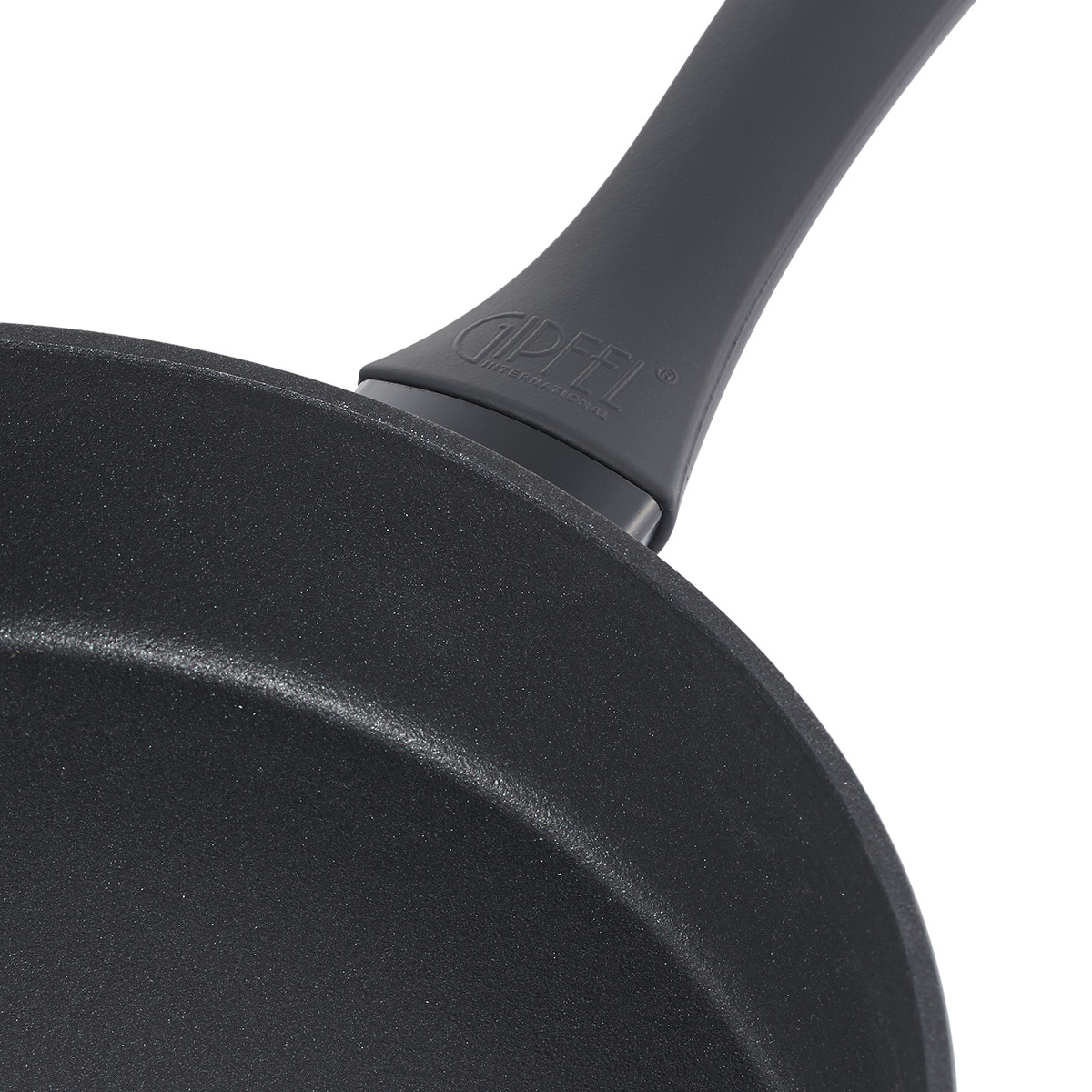 Алюминиевая сковорода Gipfel Diamant 52022 24x5,5 см с премиальным 2-слойным устойчивым к царапинам антипригарным покрытием Pfluon Premium, с индукционным дном, бакелитовой ручкой с покрытием Soft Touch. Материал: кованый алюминий, бакелит. Толщина дна: 4,0 мм, толщина стенок: 2,5 мм. Цвет: черный.
