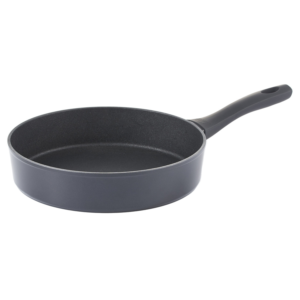 Сковорода диаметром 26 см высотой стенок 5,8 см идеально подходит для приготовления гарниров и вторых блюд (мяса, рыбы, овощей), ее быстро и удобно мыть.