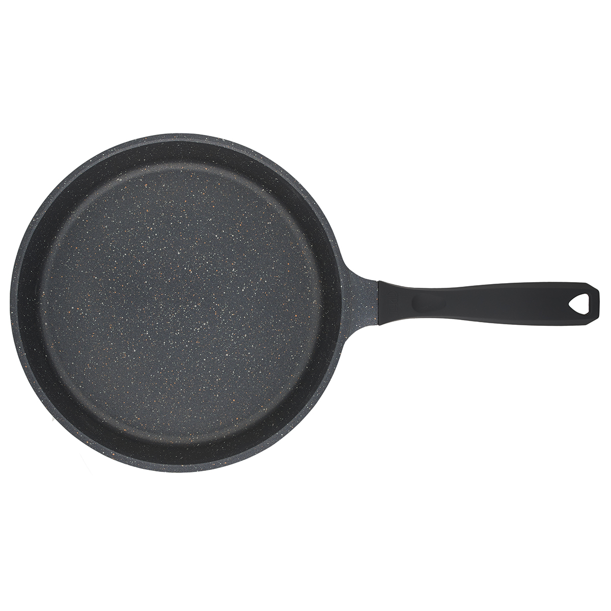 Серия Explosion выгодно отличается от других сковород оригинальным дизайном, изюминка которого заключается в необычной расцветке покрытия – на темном фоне присутствует множество вкраплений, преимущественно, золотистого оттенка. Такая посуда гарантировано впишется в любой кухонный интерьер.
