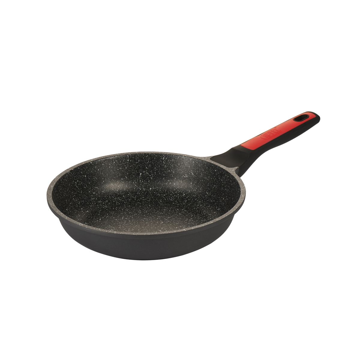 Серия посуды FAVORITE исключительно прочна и надежна благодаря прочному материалу корпуса, литому алюминию, который к тому же имеет довольно внушительную толщину – 4,5 мм в районе дна и 1,8 мм в районе стенок. Модели серии FAVORITE отличаются не только надежностью, но и удобством при готовке, которое обеспечивают антипригарное гранитное покрытие Whitford QuanTanium и бакелитовая ручка с покрытием Soft-touch. Первое практически исключает пригорание пищи при готовке, а вторая позволяет брать горячую сковороду без использования прихватки. Все предметы серии подходят для использования на индукционных плитах, диаметр сковороды составляет 26 см. Диаметр дна сковороды 19 см.