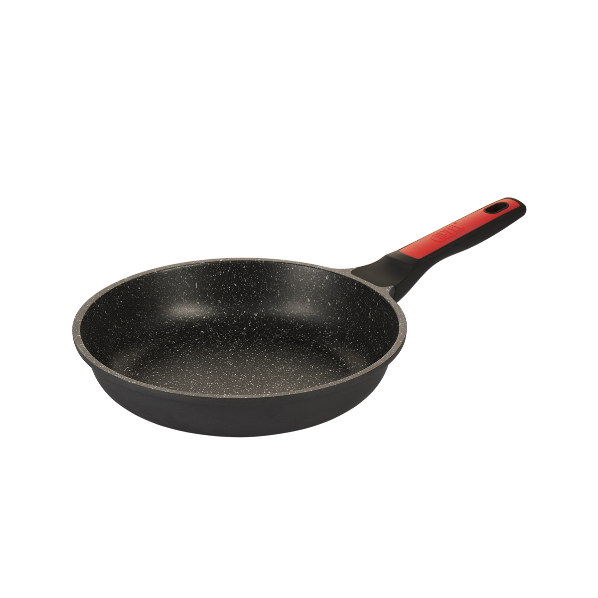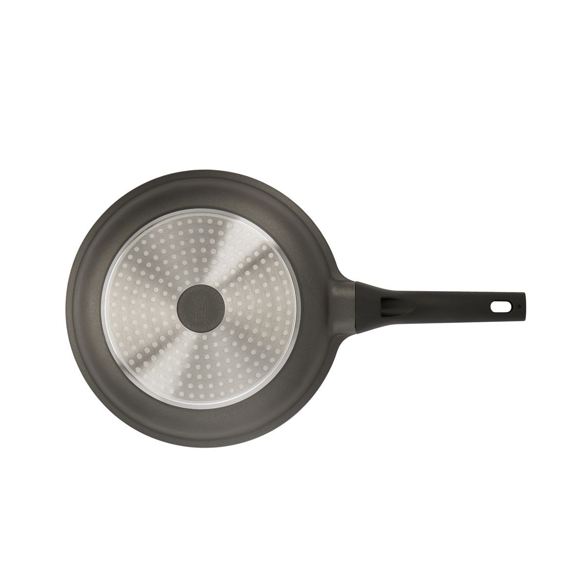Серия посуды FAVORITE исключительно прочна и надежна благодаря прочному материалу корпуса, литому алюминию, который к тому же имеет довольно внушительную толщину – 4,5 мм в районе дна и 1,8 мм в районе стенок. Модели серии FAVORITE отличаются не только надежностью, но и удобством при готовке, которое обеспечивают антипригарное гранитное покрытие Whitford QuanTanium и бакелитовая ручка с покрытием Soft-touch. Первое практически исключает пригорание пищи при готовке, а вторая позволяет брать горячую сковороду без использования прихватки. Все предметы серии подходят для использования на индукционных плитах, диаметр сковороды составляет 28 см. Диаметр дна сковороды 20см.
