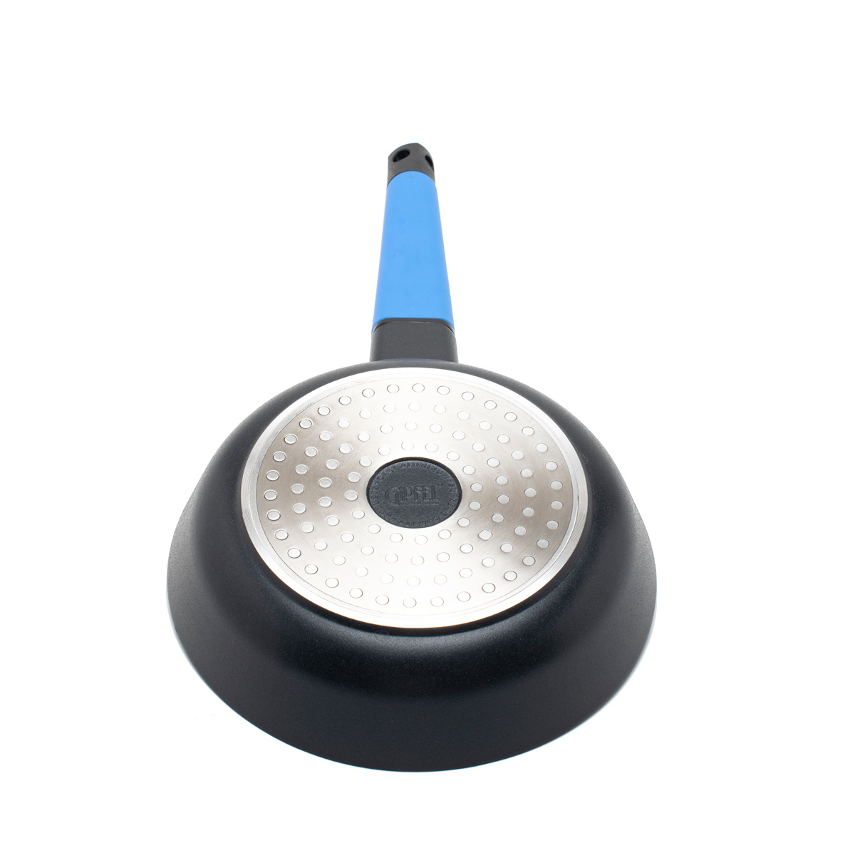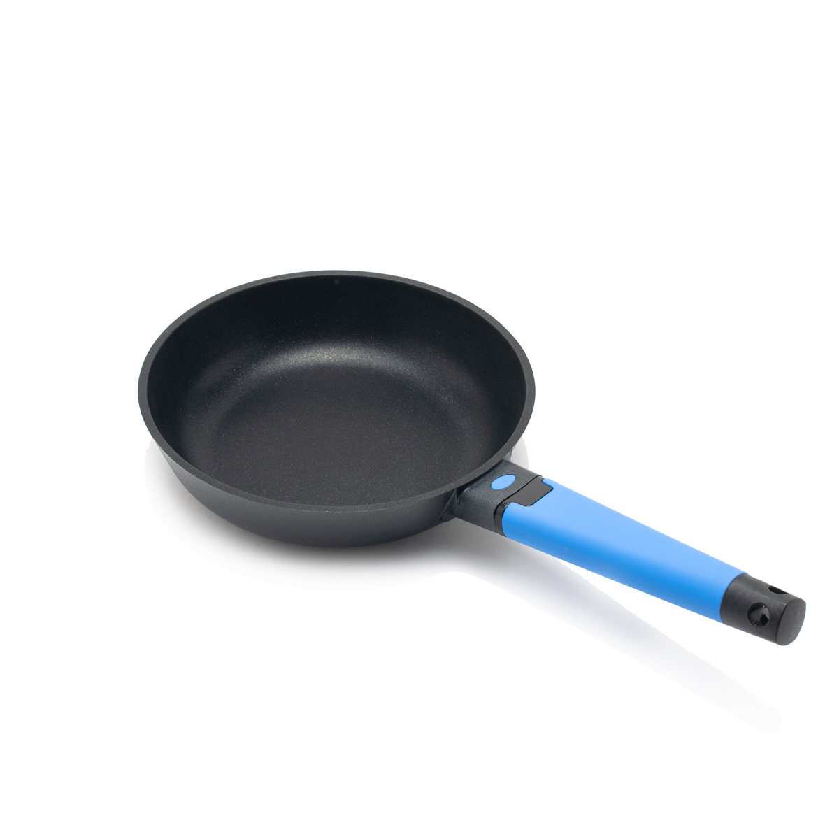Серия посуды MAGDA является отличным примером того, как качество и практичность идеально сочетаются с ярким дизайном. Корпус из литого алюминия оборудован 3-слойным антипригарным покрытием Greblon C3 и имеет классическую темную расцветку, которая оригинально сочетается с синей ручкой. Диаметр данной сковороды составляет 20 см. Для того чтобы снять ручку, необходимо повернуть ее наконечник против часовой стрелки.
