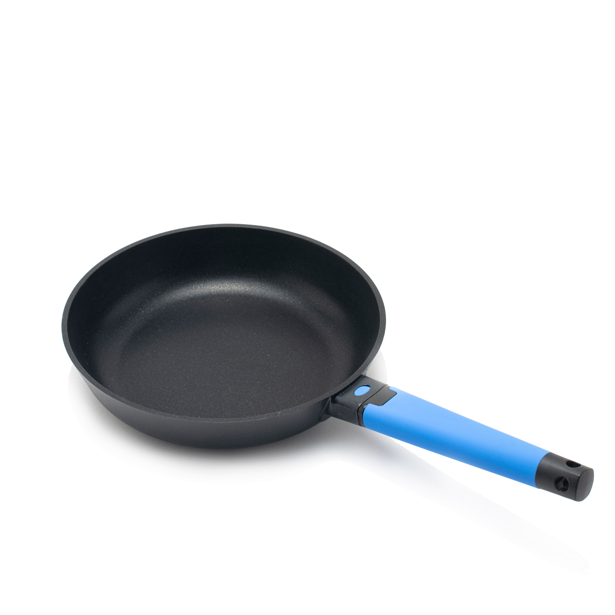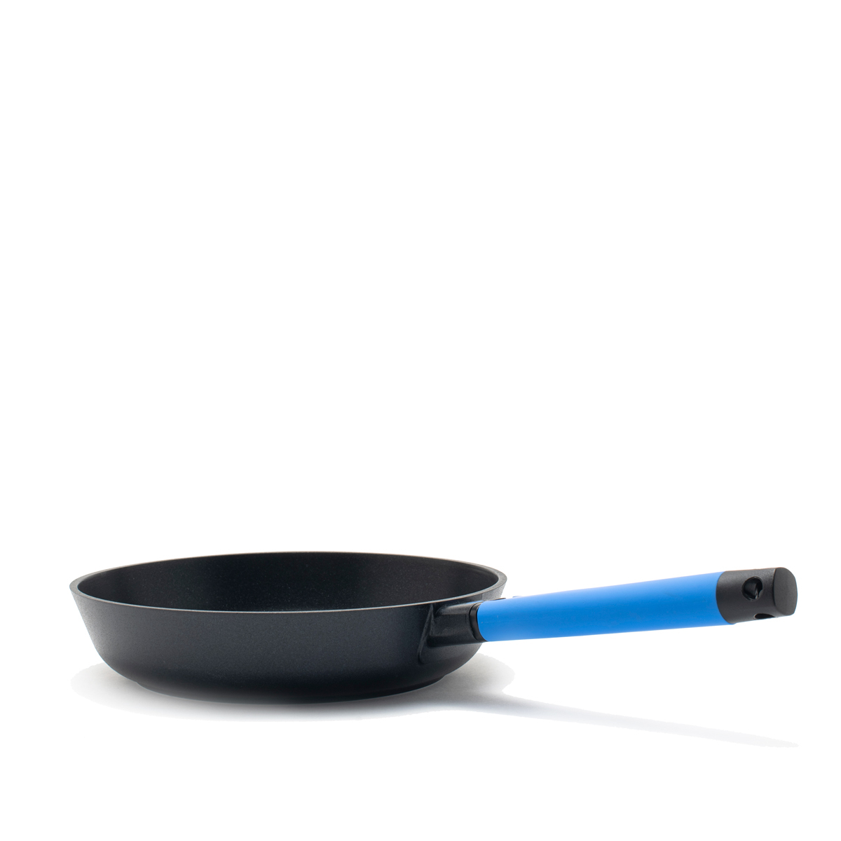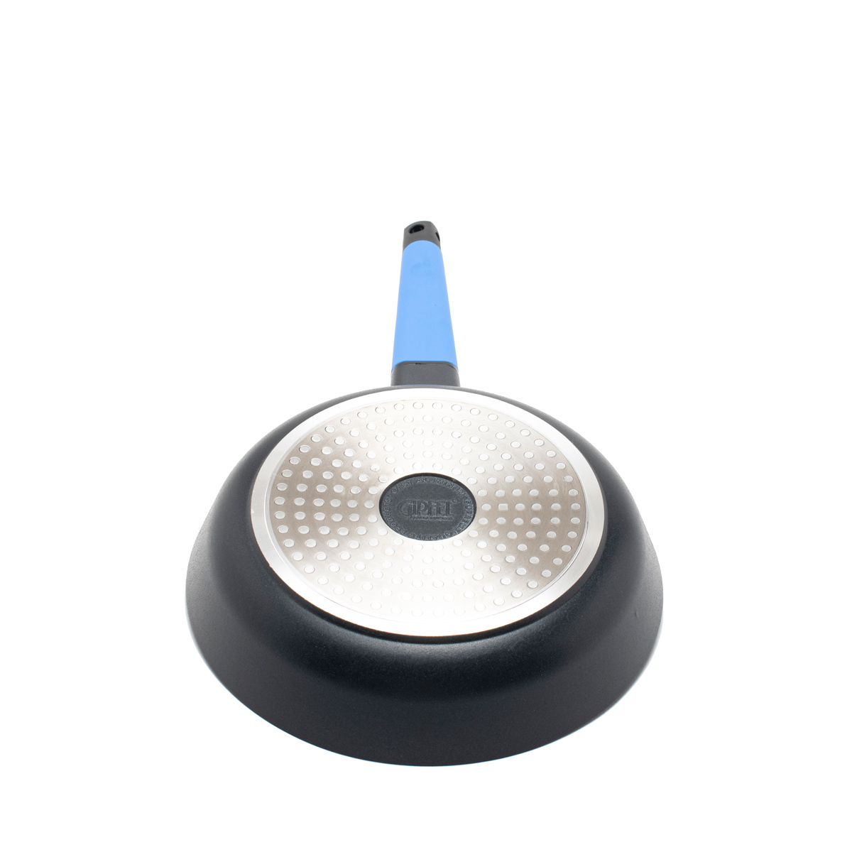 Серия посуды MAGDA является отличным примером того, как качество и практичность идеально сочетаются с ярким дизайном. Трехслойный корпус из литого алюминия оборудован антипригарным покрытием Greblon и имеет классическую темную расцветку, которая оригинально сочетается с синей ручкой. Диаметр данной сковороды составляет 24 см. Для того чтобы снять ручку, необходимо повернуть ее наконечник против часовой стрелки.