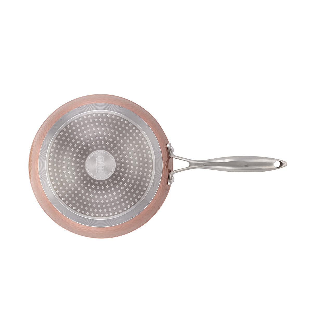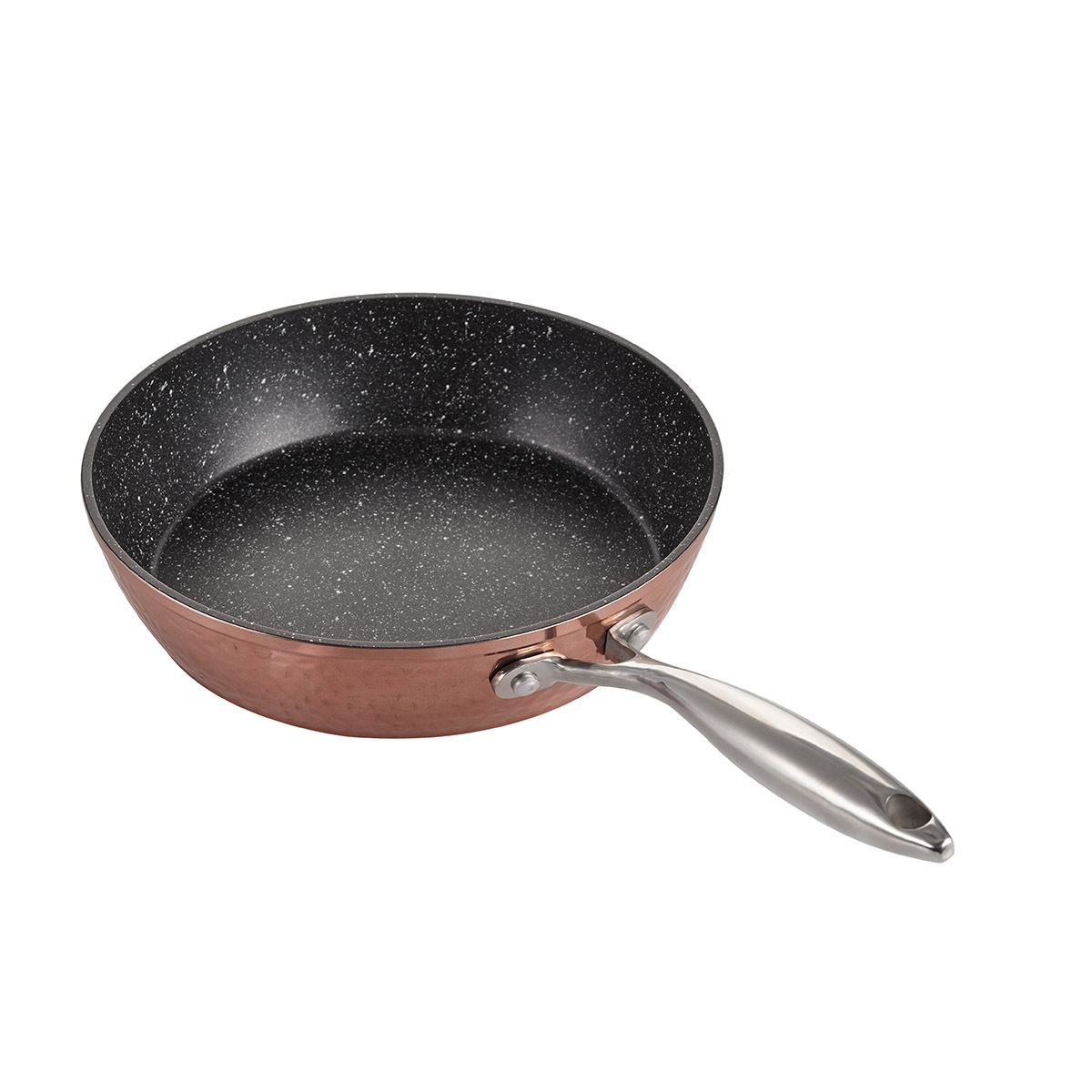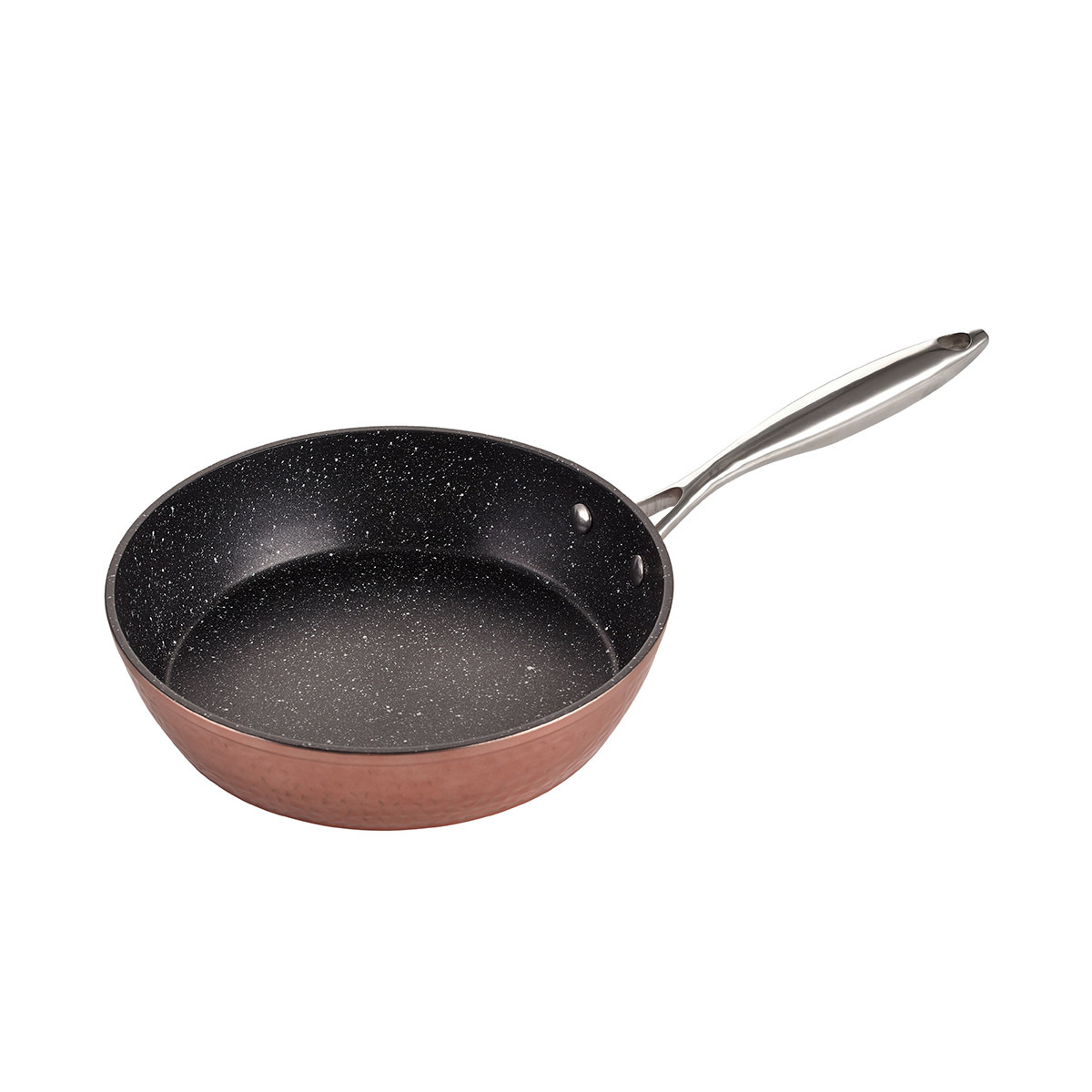 Алюминиевая сковорода Gipfel Matthias 0759. Диаметр 24 см. Сделана из кованного алюминия с мраморным антипригарным покрытием Whitford Xylan Plus. У сковороды индукционное дно. Вся серия Matthias имеет оригинальную золотистую рельефную поверхность.