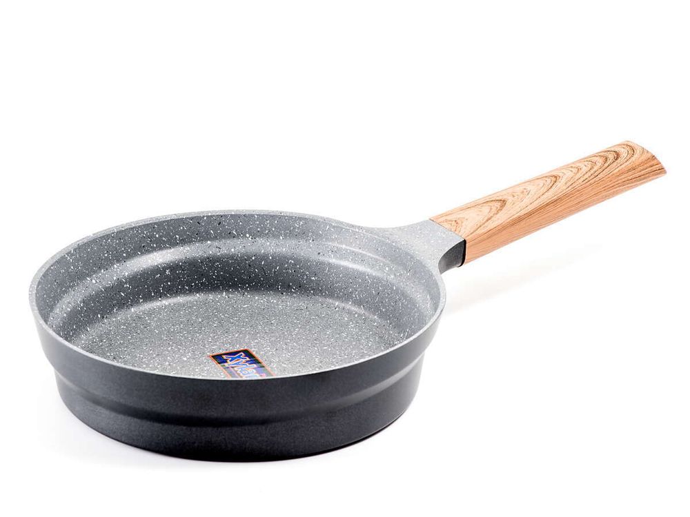 Серия посуды MILADY сочетает в себе сразу несколько конкурентных преимуществ. Все модели данной серии выполнены из литого алюминия, характеризующегося высокой теплопроводностью, отличными антидеформационными свойствами и небольшим весом. Как сковороды, так и кастрюли серии оснащены антипригарным мраморным покрытием с внутреннем стороны, диаметр данной модели составляет 24 см.