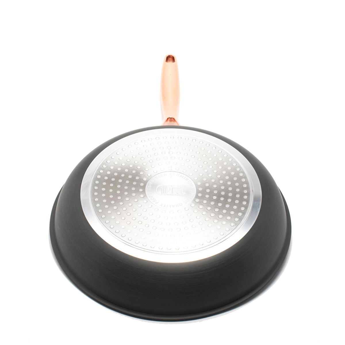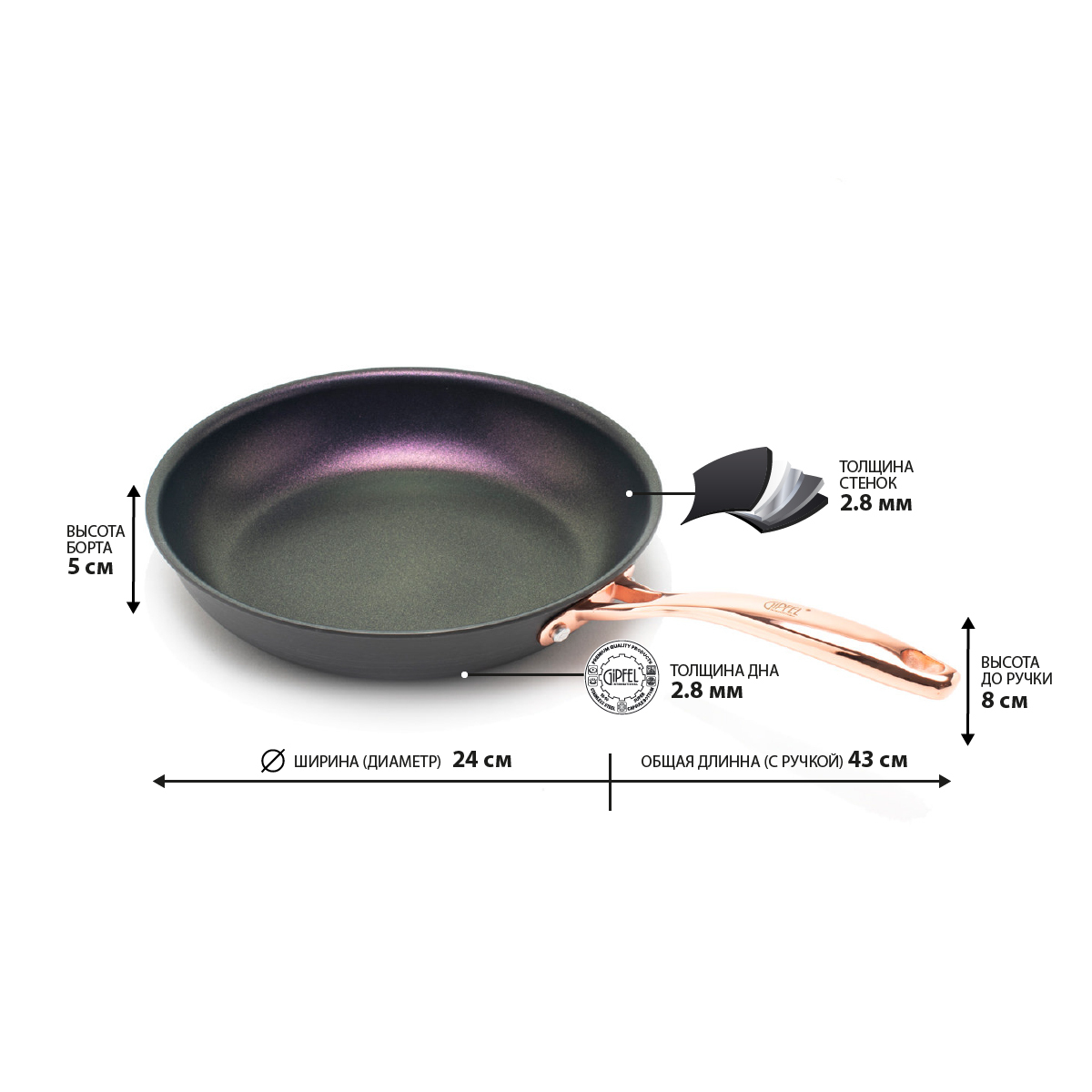Данная сковорода изготовлена из качественного алюминия, оснащена антипригарным покрытием Xylan и подходит для готовки на индукционных плитах. Диаметр сковороды составляет 24 см. Высота 4,5 см. Диаметр дна 18 см. Ручка изготовлена из нержавеющей стали.