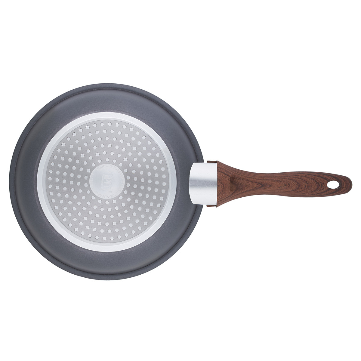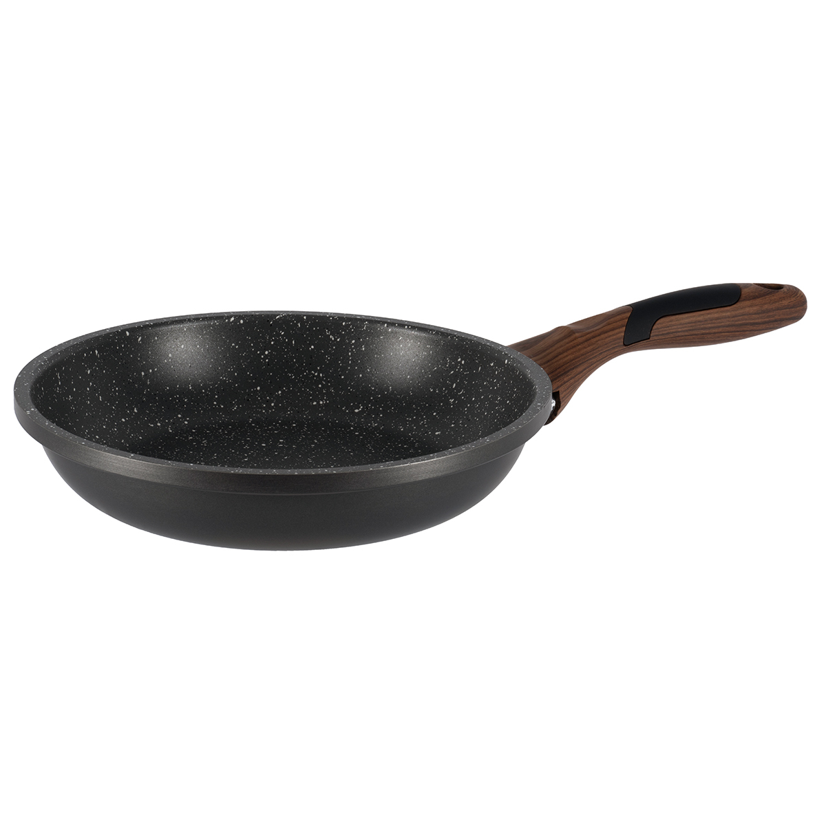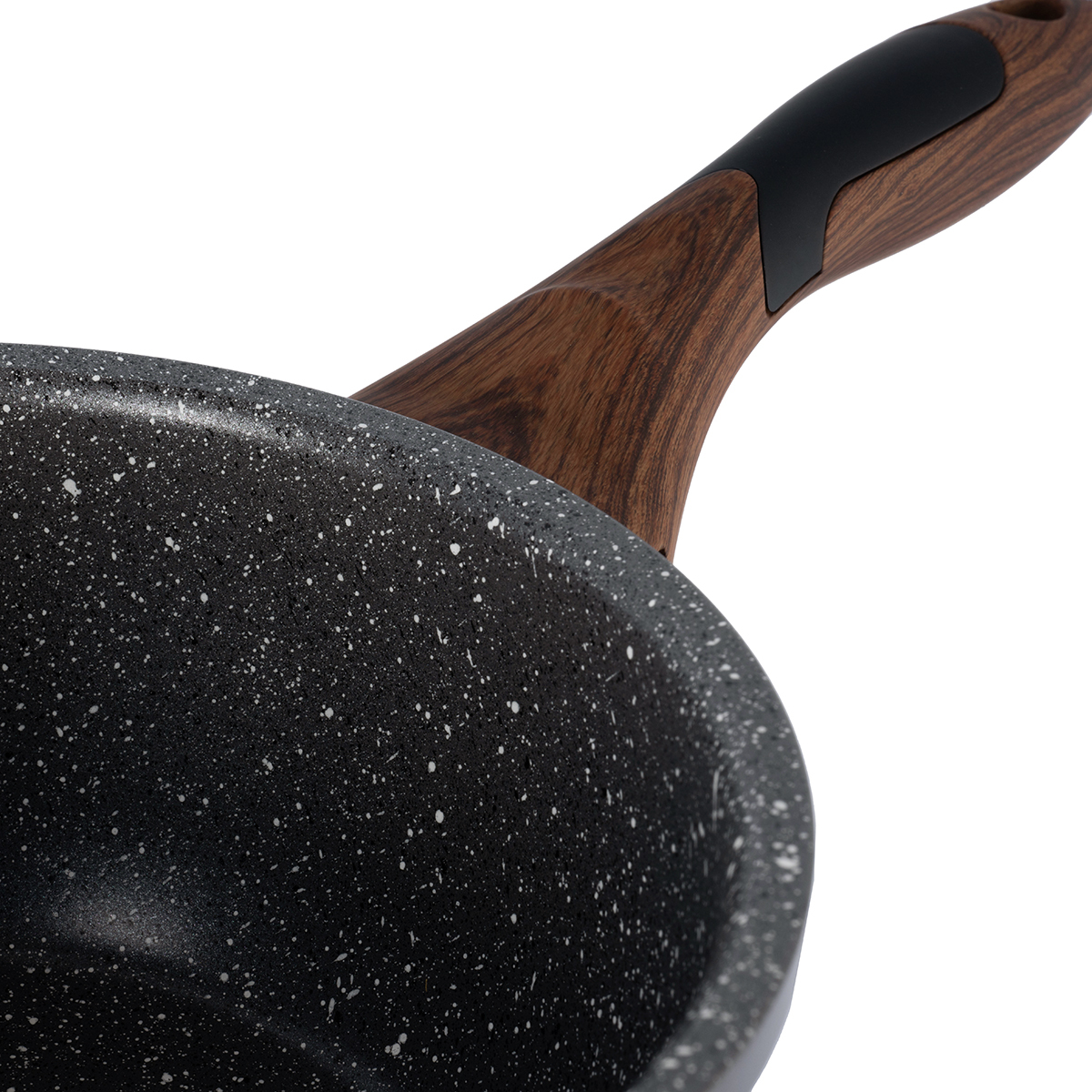 Серию посуды POLA отличает не только надежность и высокое качество, но и оригинальный дизайн, который обеспечивают ручки деревянной расцветки, контрастирующие с однотонным темно-серым корпусом посуды, изготовленным из прочного алюминия. На внутреннюю часть посуды нанесено двухслойное антипригарное мраморное покрытие, а на ручки – покрытие покрытием Soft touch. Подходит для любых плит, включая индукционные. Диаметр данной сковороды составляет 20 см. Диаметр дна 15 см. Толщина 2,3 мм.