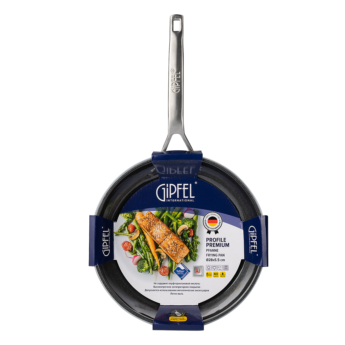 Алюминиевая сковорода Gipfel Profile Premium 51378 28х5,5 см, изготовлена из кованого алюминия с премиальным 3-cлойным антипригарным покрытием Teflon Profile, с ручкой из нержавеющей стали, с индукционным дном. Толщина дна 5 мм, толщина стенок 2,1 мм.