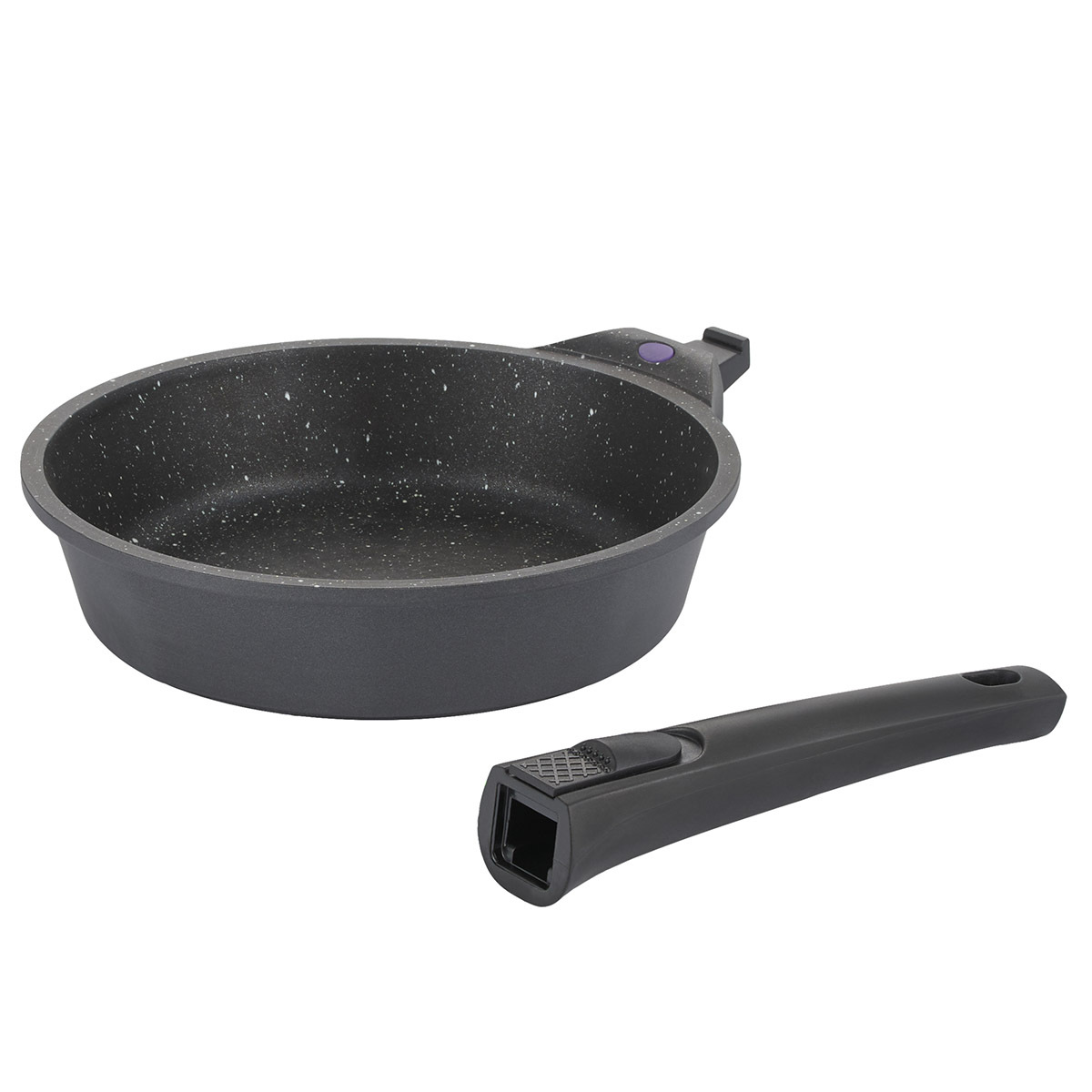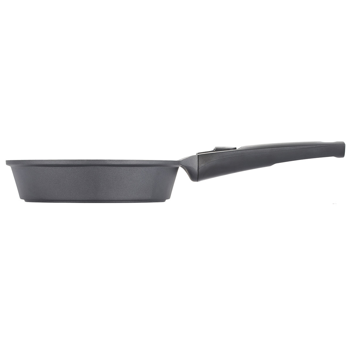 Сковорода из литого алюминия размером 20x5 см со съемной ручкой, с индукционным дном, с 2-слойным антипригарным покрытием Whitford Xylan Plus. Толщина стенок 2 мм, толщина дна 4,7 мм.