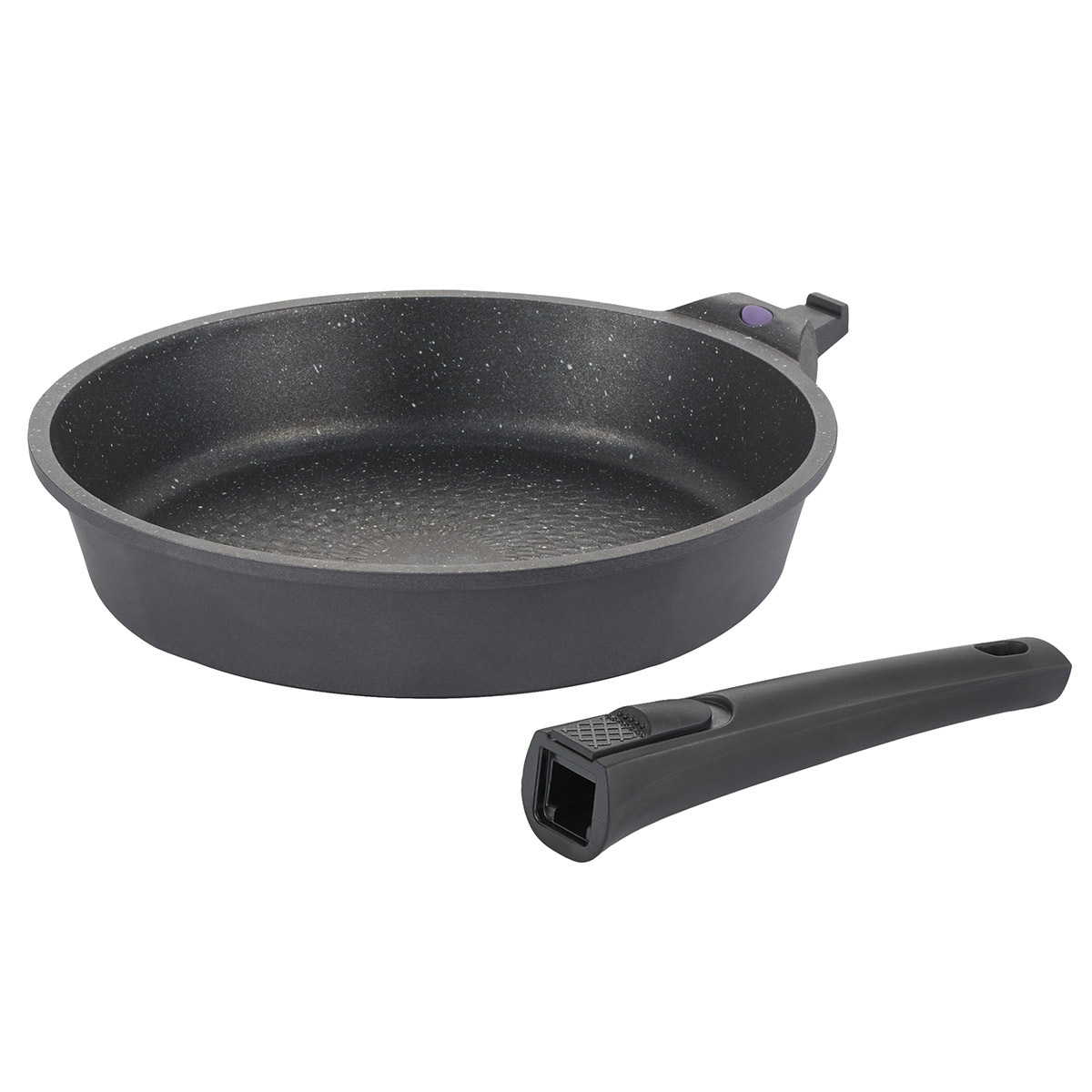 Сковорода из литого алюминия размером 24x5 см со съемной ручкой, с индукционным дном, с 2-слойным антипригарным покрытием Whitford Xylan Plus. Толщина стенок 2 мм, толщина дна 4,7 мм.