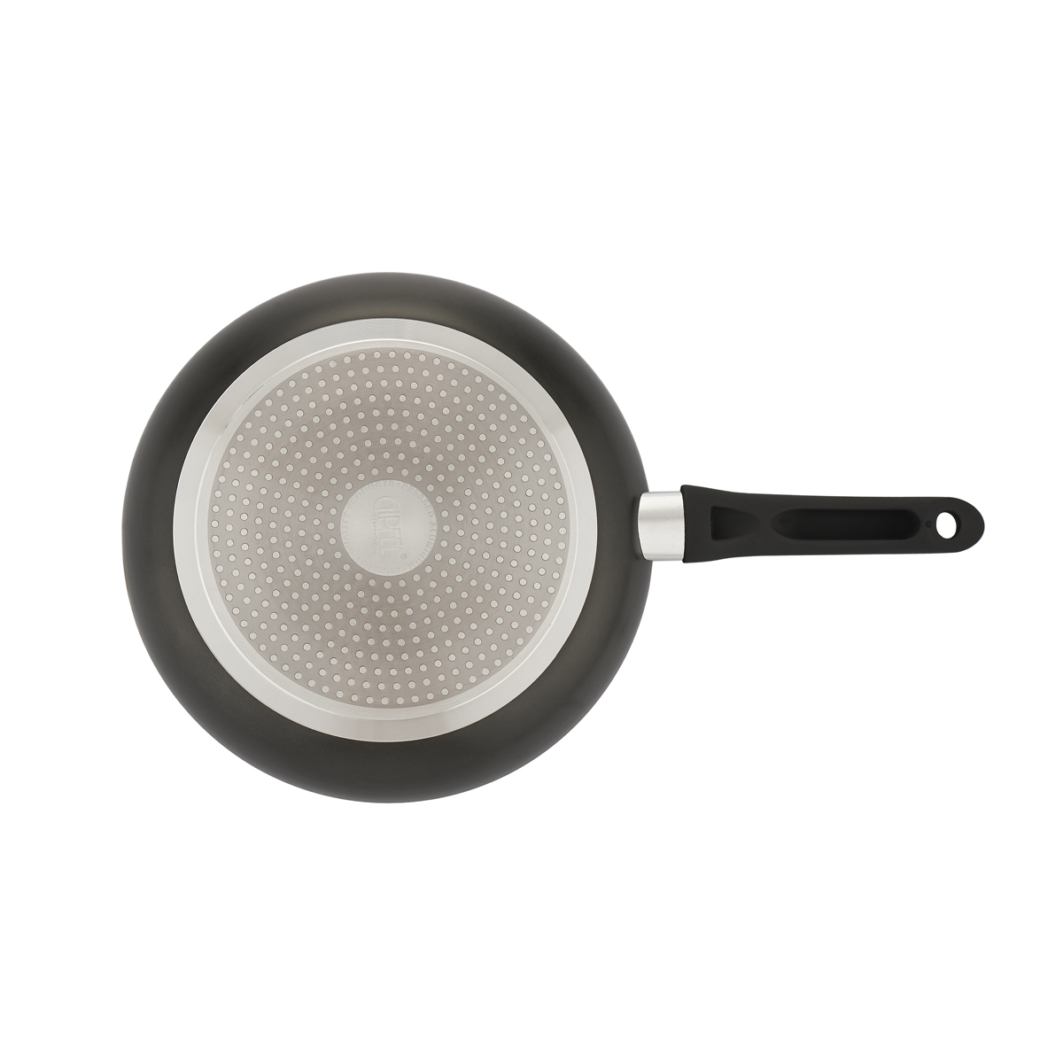 Серия сковород RIFFY изготовлена из прочного алюминия толщиной 3 мм, идеально подходящего для непродолжительного нагрева, например, разогрева или жарки яичницы. Все предметы серии подходят для готовки на индукционных плитах, на ручку посуды нанесено покрытие Soft-touch, которое не нагревается в процессе приготовления. Также стоит отметить долговечное и эффективное антипригарное покрытие Pfluon, которое практически исключает пригорание еды при жарке или тушении. Диаметр этой модели составляет 28 см, а высота стенок – 5 см.