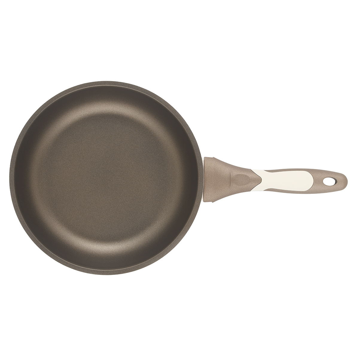 Сковорода Gipfel STADELLA BEIGE 51100. Размер 20х4,5 см. Сковорода сделана из прессованного алюминия. У сковороды бакелитовая ручка с покрытием Soft-touch. Сковорода оснащена двуслойным антипригарным покрытием Pfluon COOKMARK. Подходит для любых видов плит, включая индукционные. Толщина стенок 2,3 мм, толщина дна 5,5 мм.