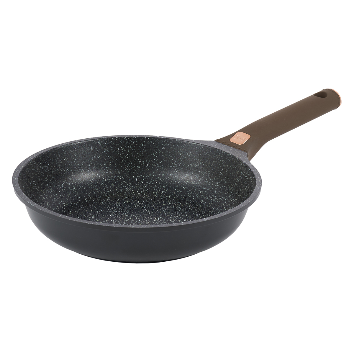 Алюминиевая сковорода Gipfel Taurus 52665. Размер 26х6 см. Изготовлена из литого алюминия с 4-слойным антипригарным мраморным покрытием Whitford QuanTanium, c бакелитовой ручкой с покрытием Soft-touch. Цвет: черный, коричневый.