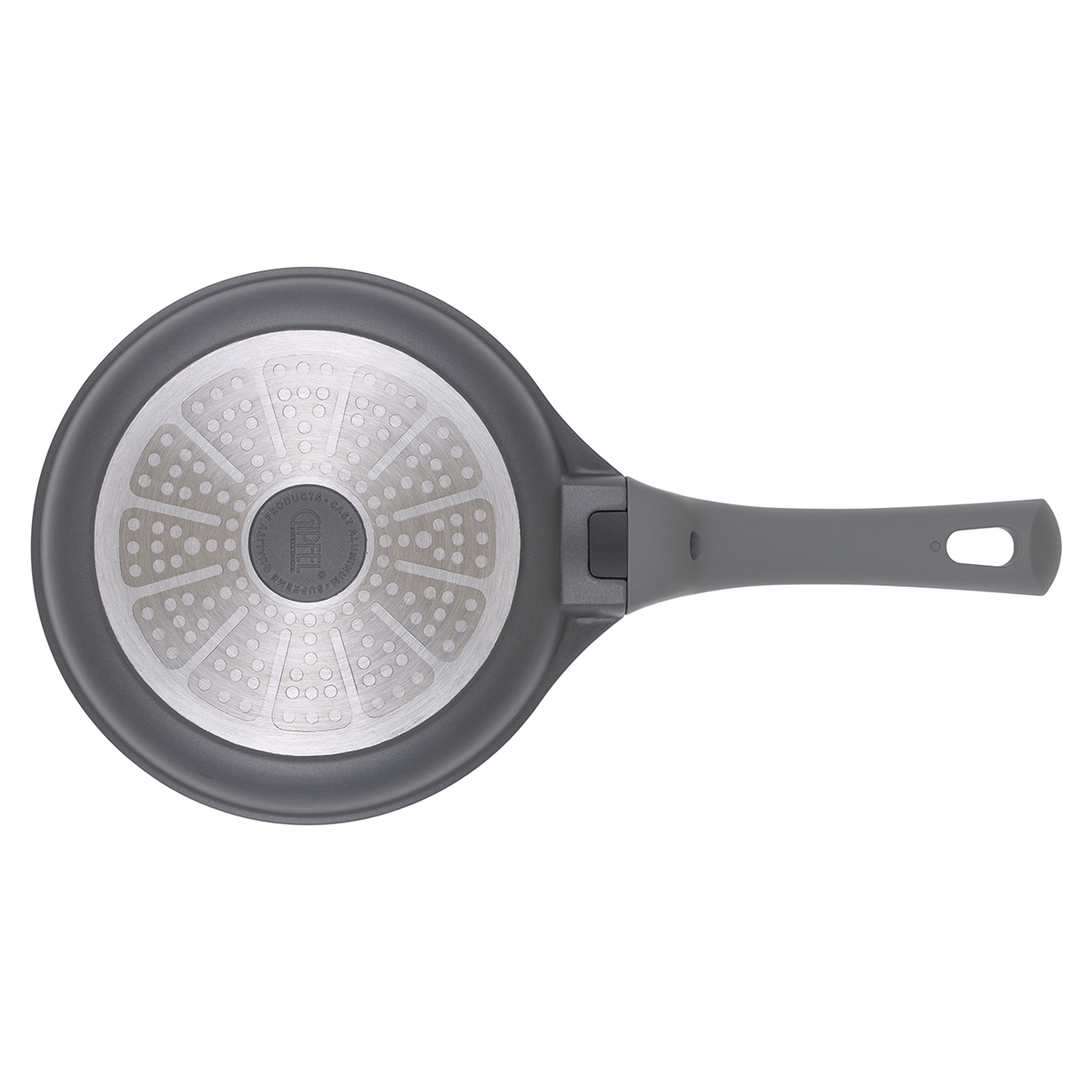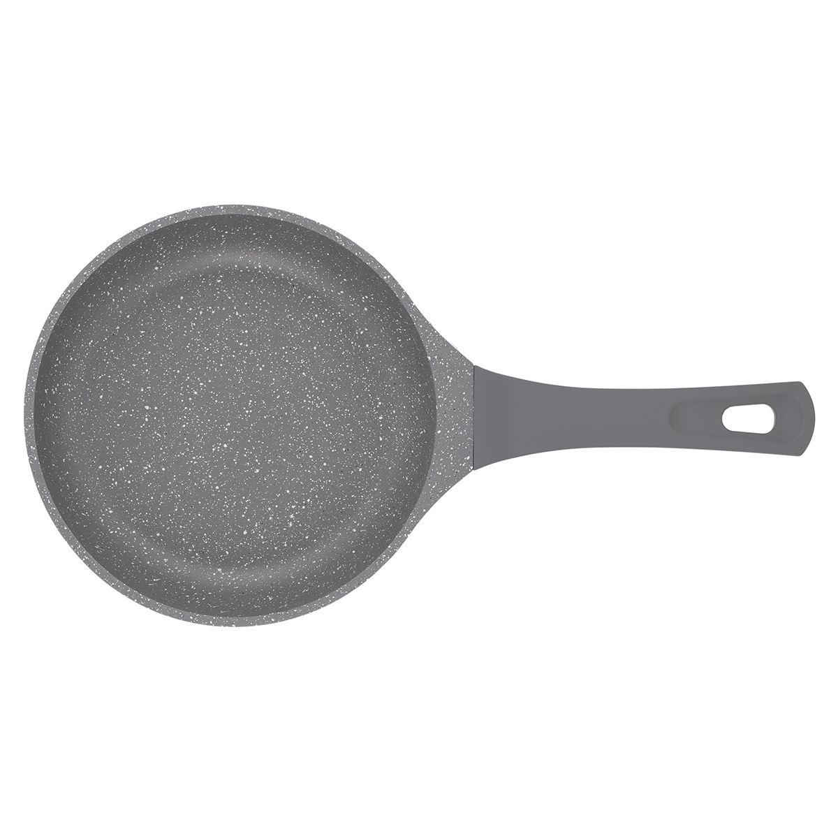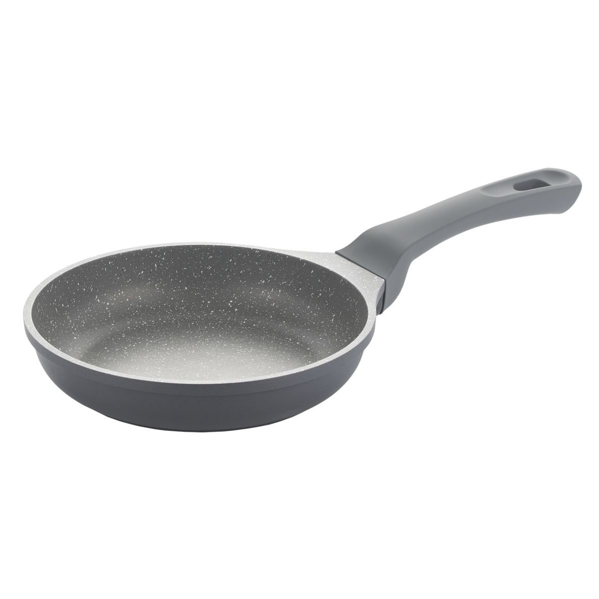 Отличной пример классической сковороды, оснащенной всем необходимым для приготовления вкусных и полезных блюд. Внутри мраморное покрытие Ilag Ultimate. Корпус сделан из литого алюминия. Ручка из бакелита не нагревается при готовке. Диаметр сковороды составляет 20 см, диаметр дна 16 см, высота - 4,5 см.