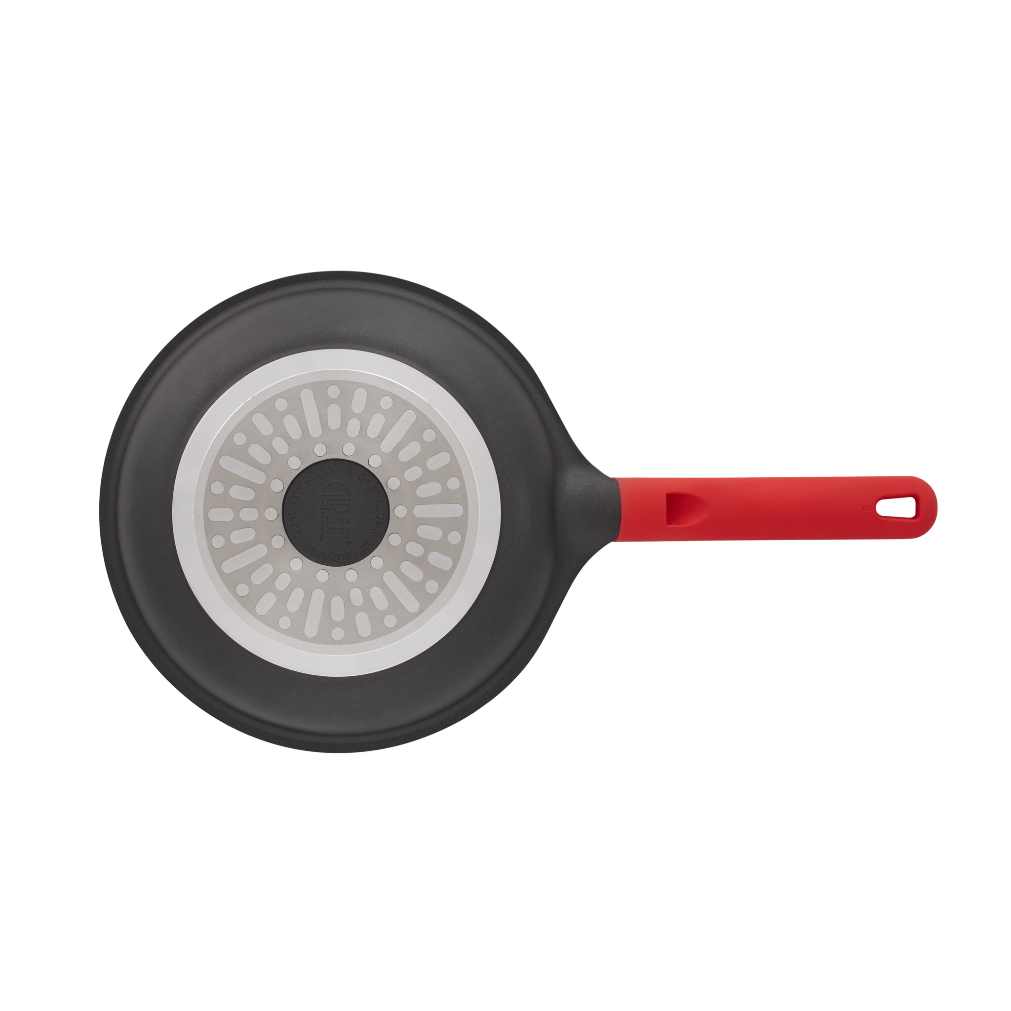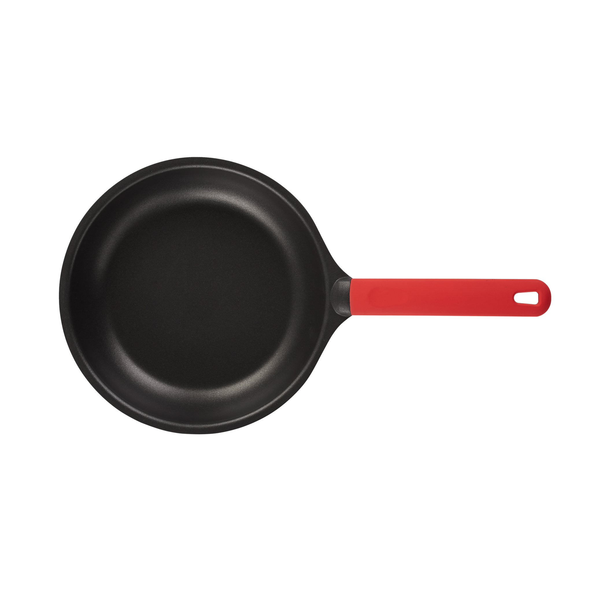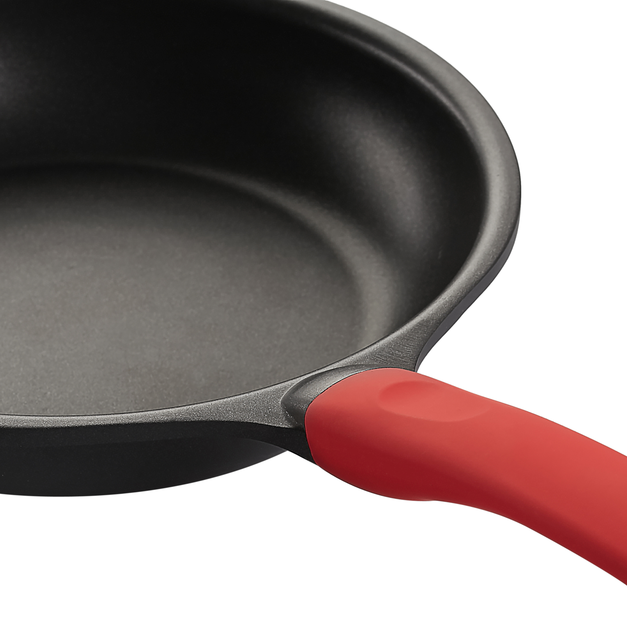 Серия посуды VELOUR отличается оригинальным дизайном – корпус посуды изготовлен в насыщенном черном цвете, а ручки посуды и крышек – в ярко красном. Посуда серии VELOUR изготовлена из литого алюминия, который является на сегодняшний день наиболее качественным видом этого металла. Внутренняя поверхность посуды VELOUR покрыта двухслойным антипригарным покрытием ILAG, а бакелитовые ручки – покрытием SOFT TOUCH. Диаметр сковороды составляет 24 см. Диаметр дна 17 см.