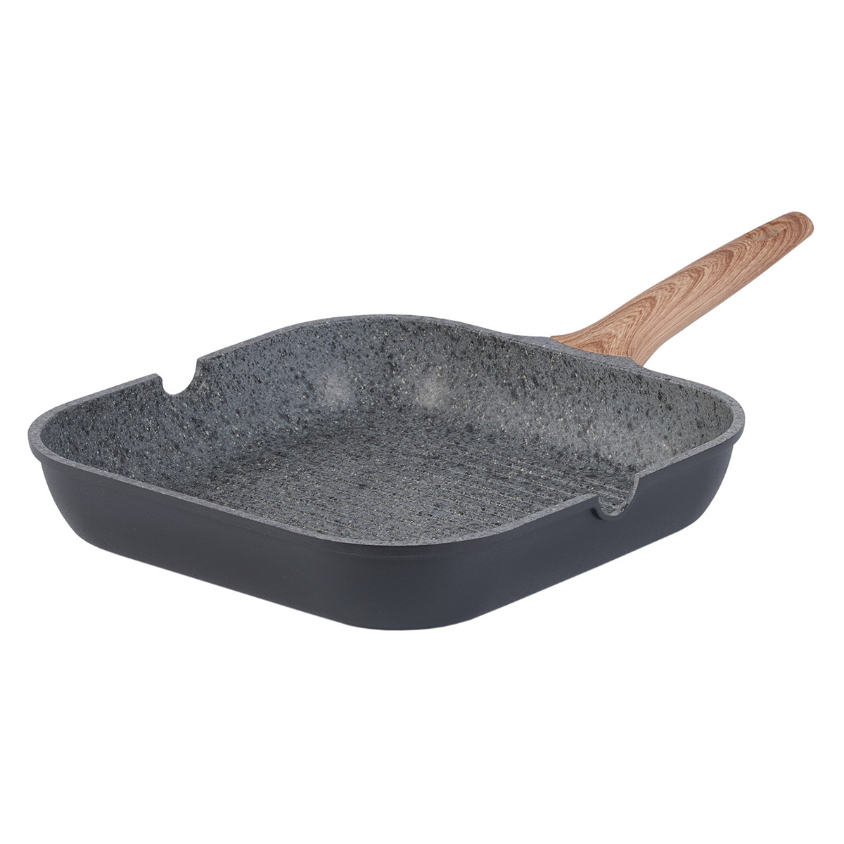 Алюминиевая сковорода-гриль Gipfel Oliver 0570 28 см. Изготовлена из литого алюминия, с гранитным антипригарным покрытием Pfluon Granite, с бакелитовой ручкой.