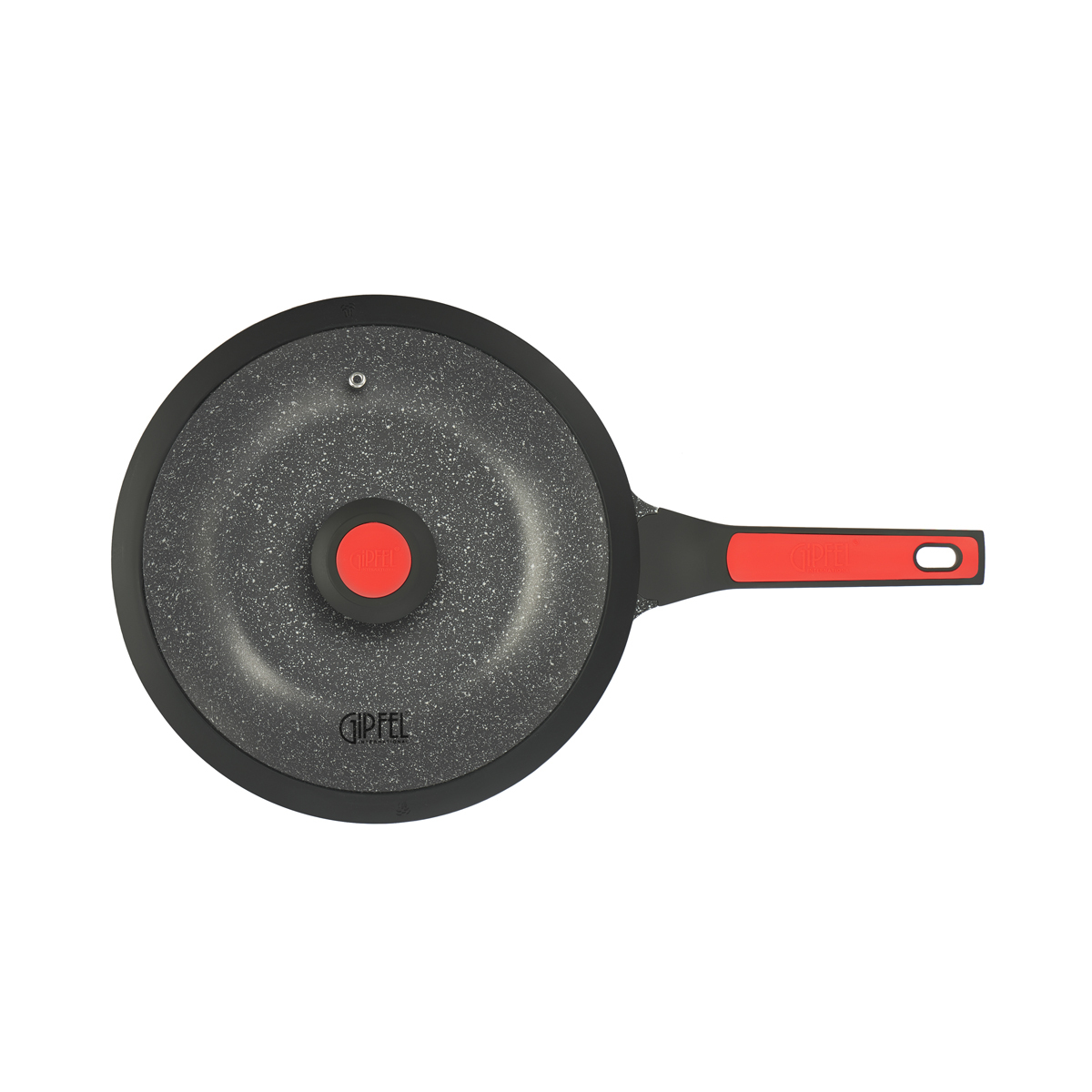 Сковорода-вок FAVORITE GIPFEL 0125. Размер сковороды 28х8 см. Сковорода выполнена из литого алюминия, оснащена бакелитовой ручкой с покрытием So ft-touchс. Мраморное антипригарное покрытие Whitford QuanTainium убережет пищу от пригорания. Крышка в комплекте. Толщина стенок 1,8 мм. Толщина дна 4,5 мм.