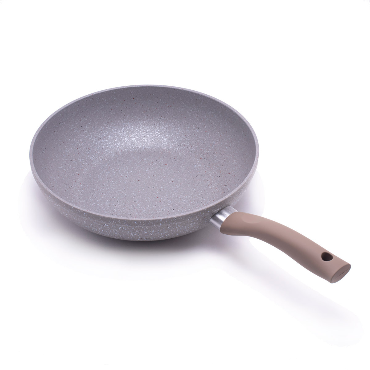 Серия классических сковород MABELLE изготовлена из качественного кованого алюминия, все модели оснащены двухслойным антипригарным покрытием и бакелитовой ручкой. Одна часть сковород MABELLE изготовлена в классическом черном цвете, другая – в светло-сером. Диаметр данной сковороды-вок составляет 28 см, она подходит для готовки на индукционных плитах. Диаметр дна 17 см.