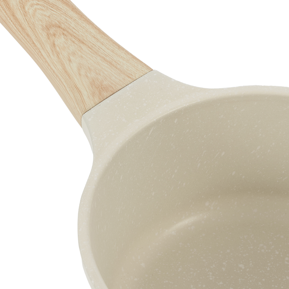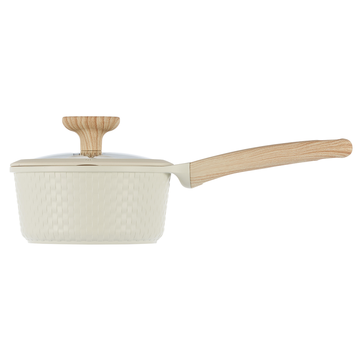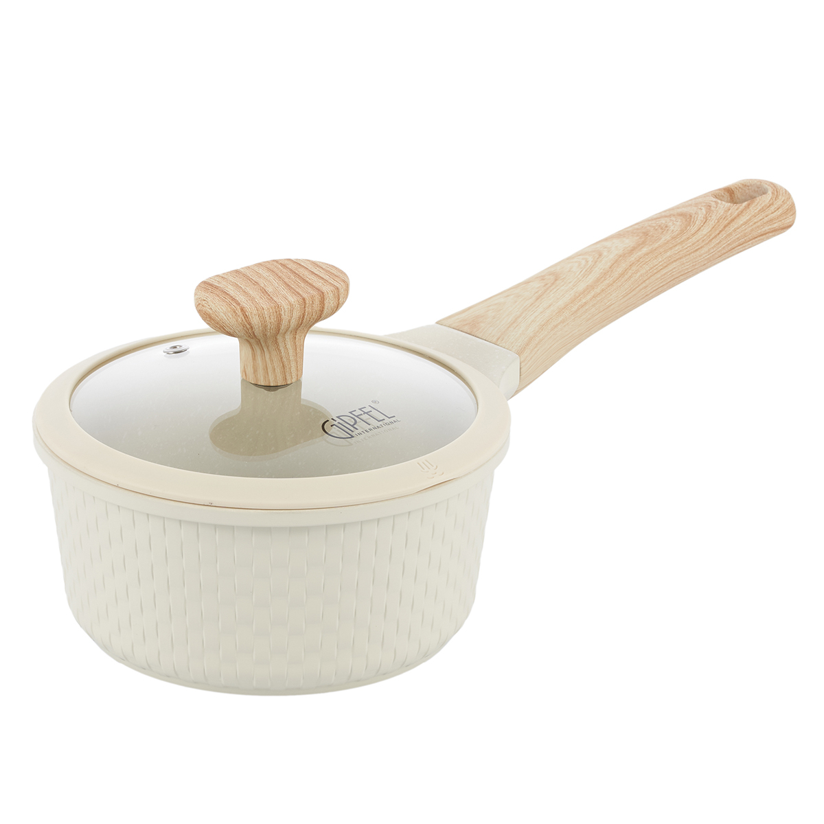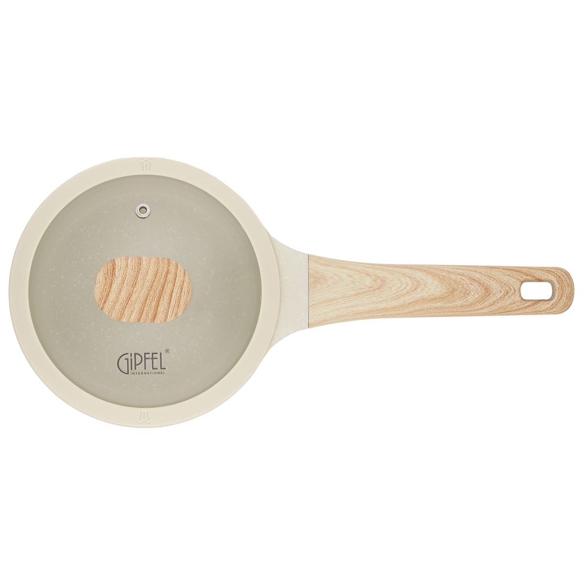 Алюминиевый ковш Gipfel Lattice 52653. Размер 16х8,5 см. Изготовлен из литого алюминия с 3-слойным антипригарным мраморным покрытием Whitford QuanTanium, c бакелитовой ручкой с покрытием Soft-touch, со стеклянной крышкой. Цвет: светло-бежевый.