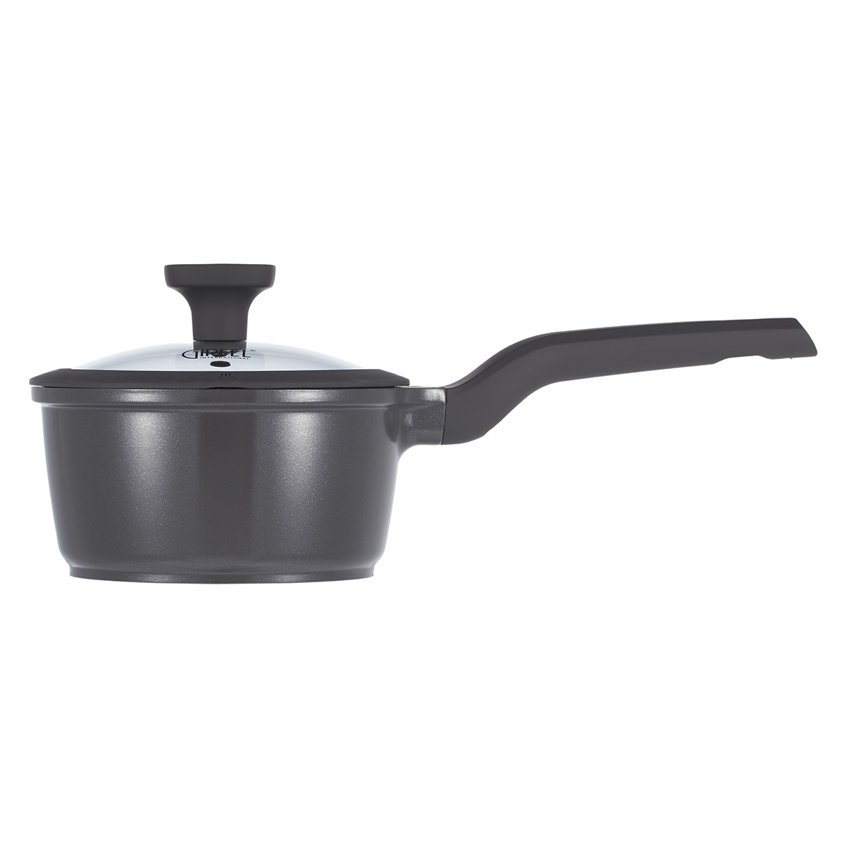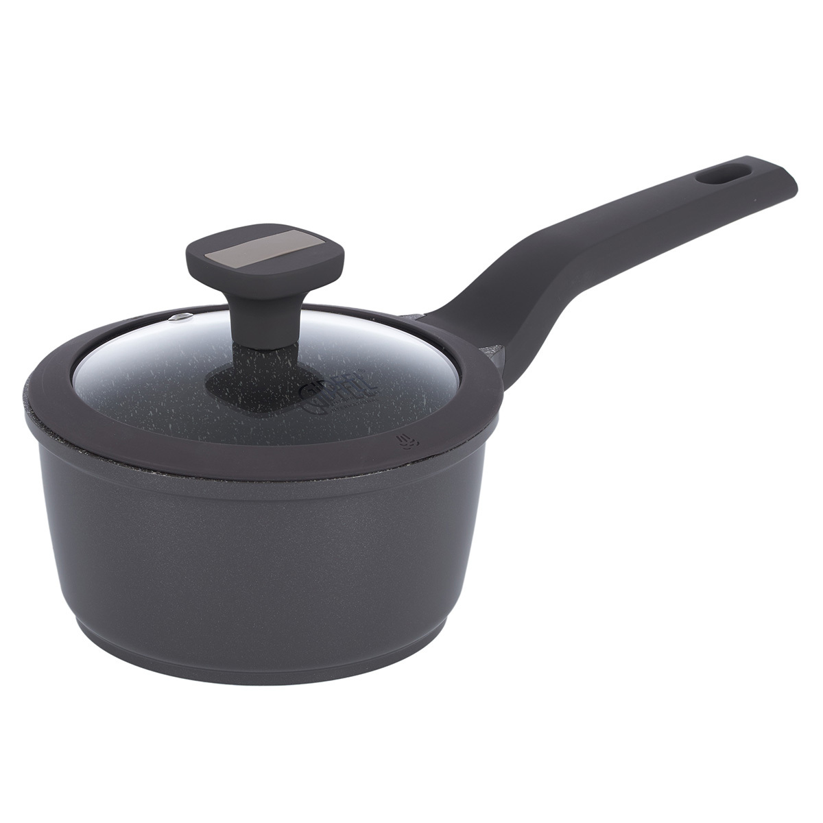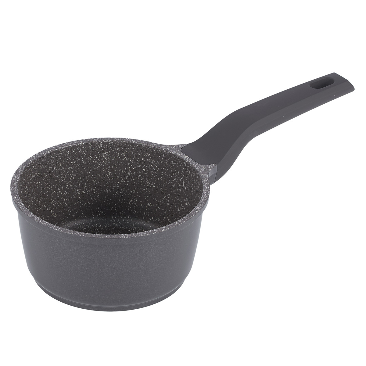 Алюминиевый ковш Gipfel Omega 52643. Размер 16х8,5 см. Объем 1,3 л. Изготовлен из литого алюминия с 3-слойным антипригарным мраморным покрытием Whitford QuanTanium, c бакелитовой ручкой с покрытием Soft-touch. Цвет: коричневый.